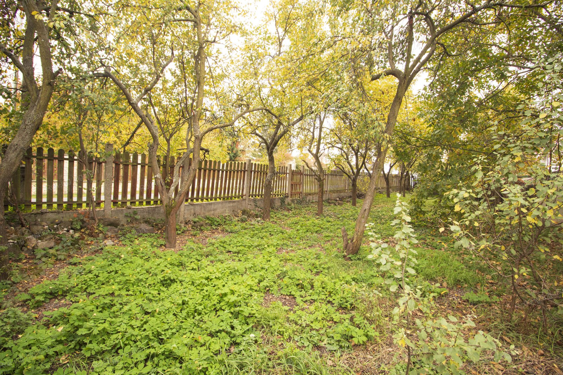 A telek 598 nm nagyságú, teljesen körbe van kerítve, az első része füves, parkosított, a hátsó része pedig a sok fának köszönhetően hangulatos, árnyas.