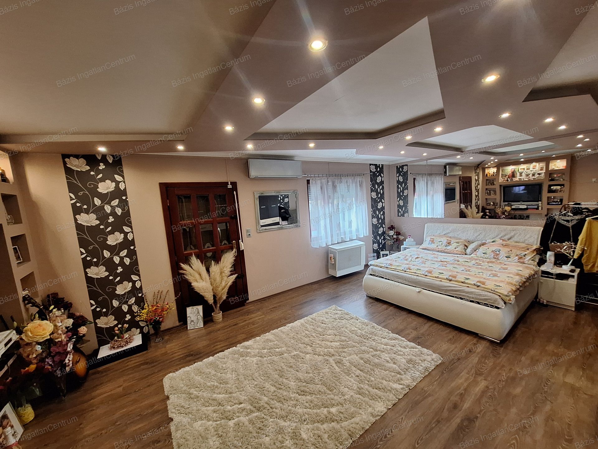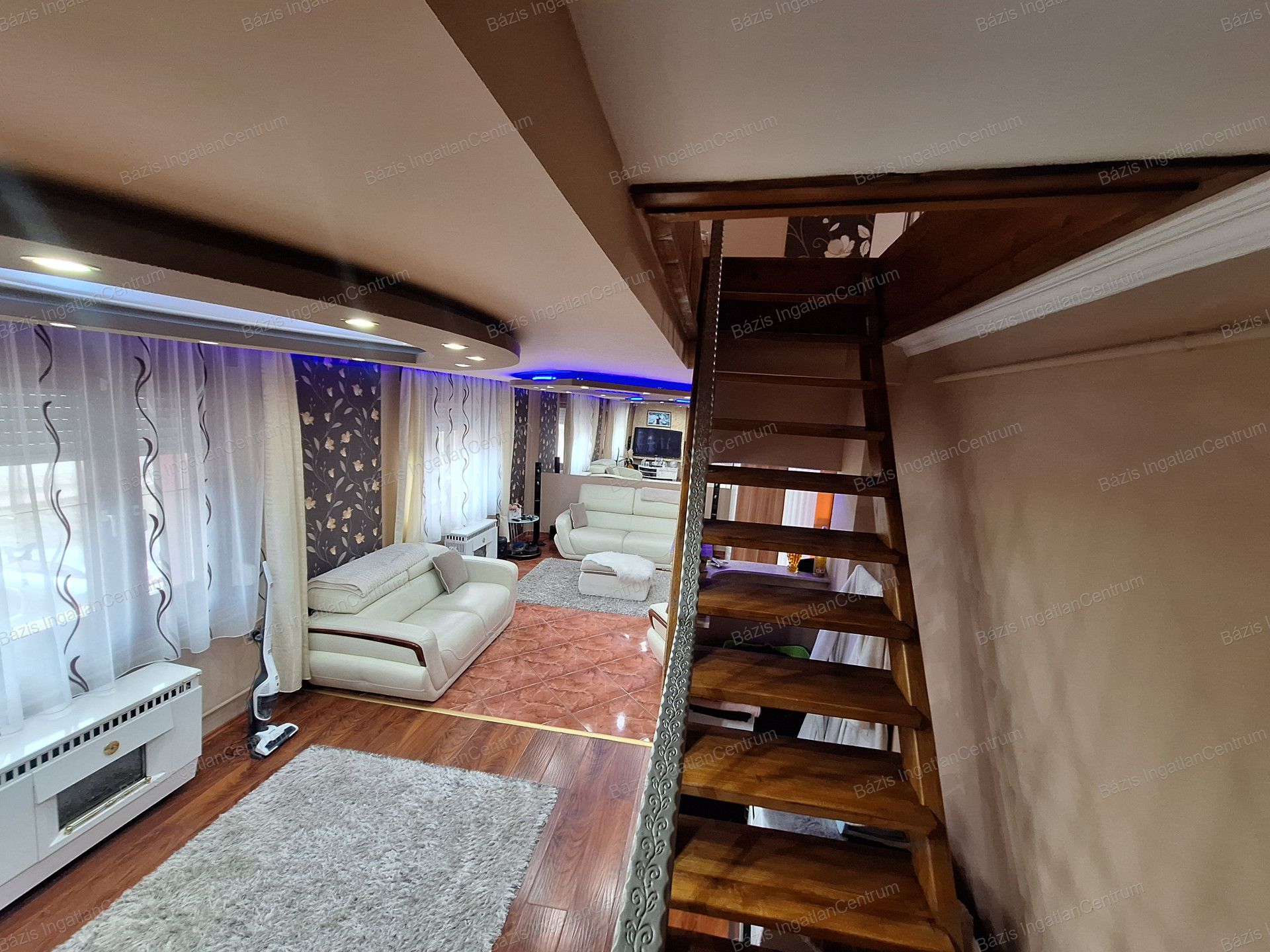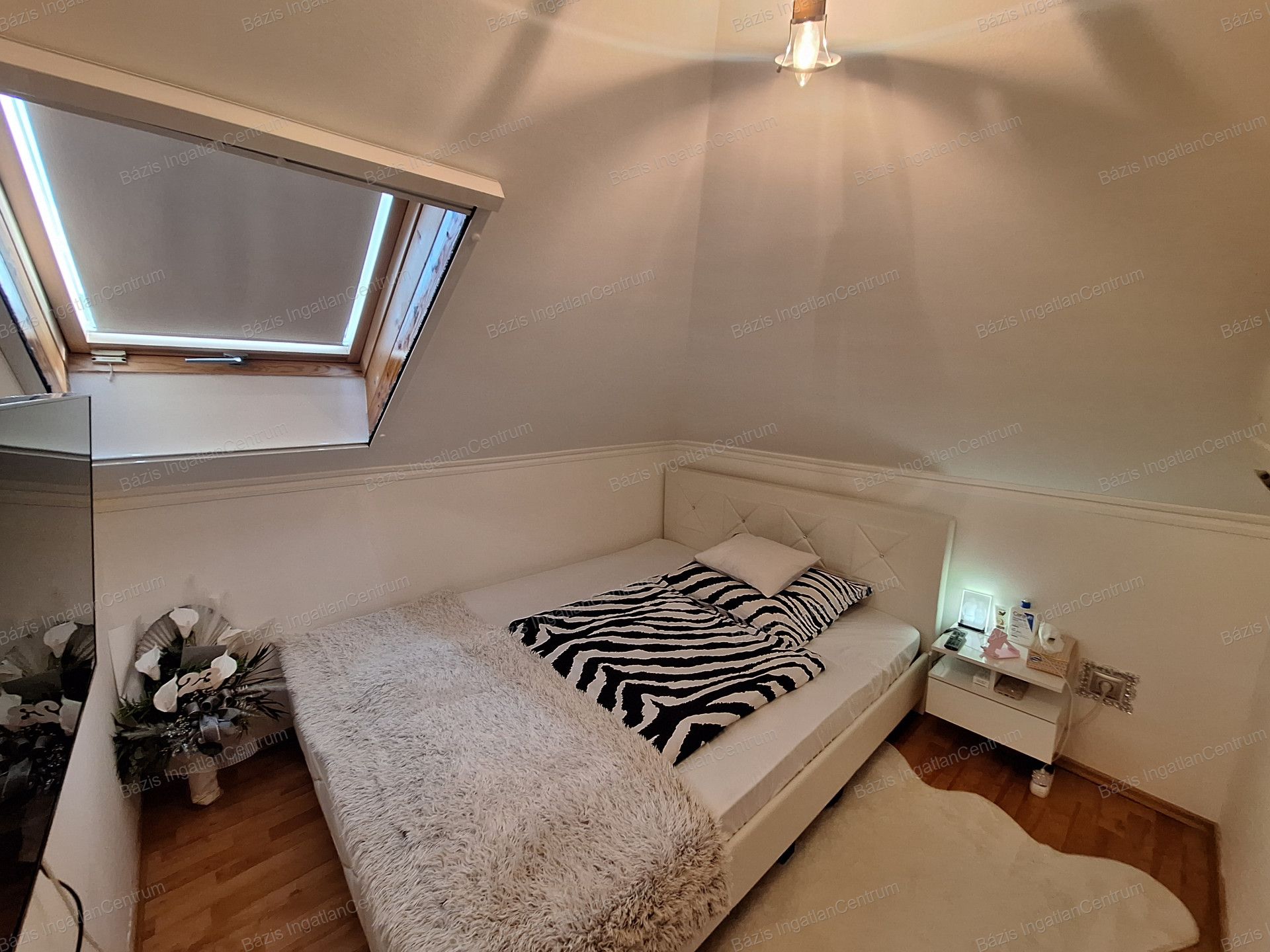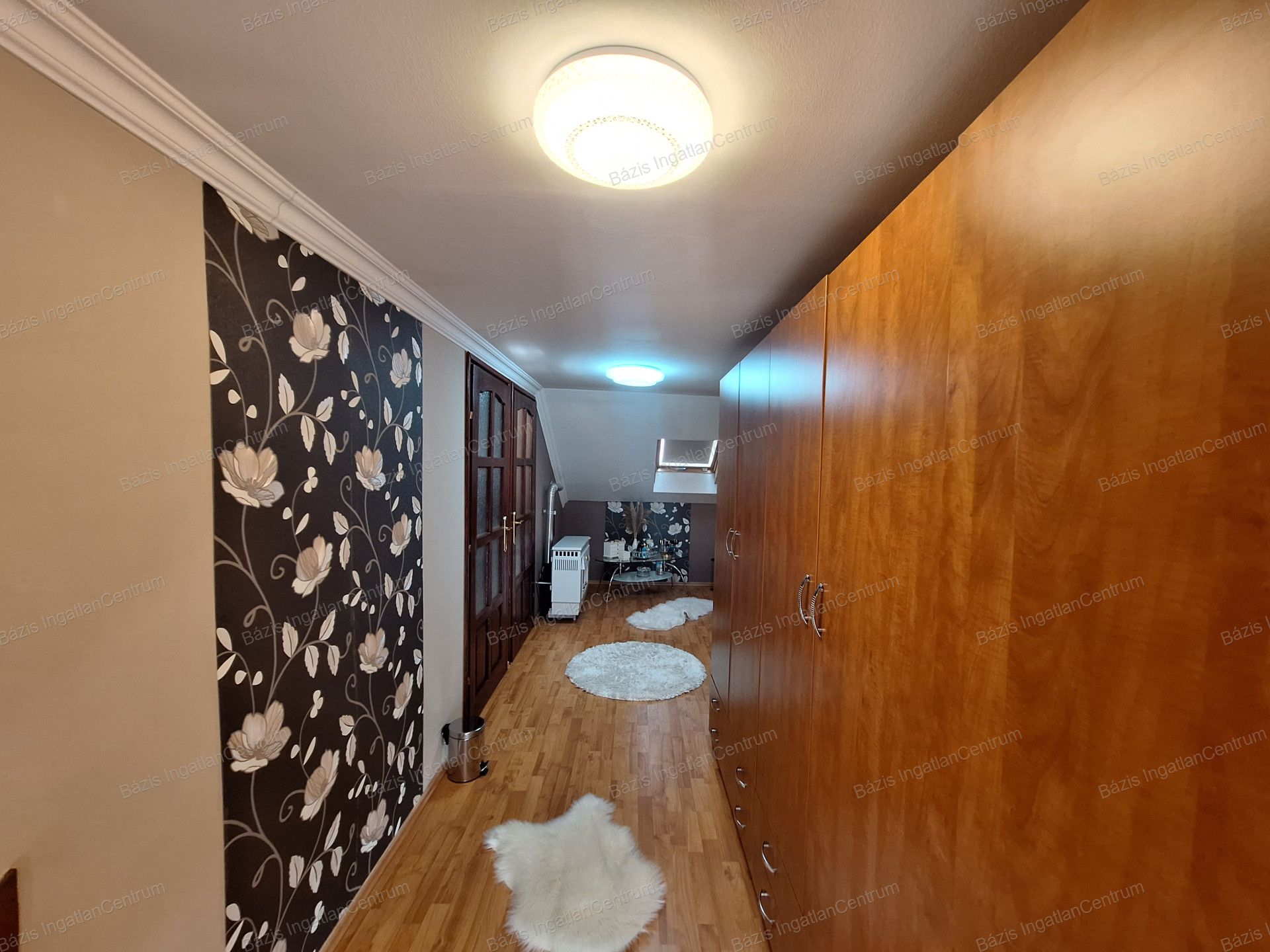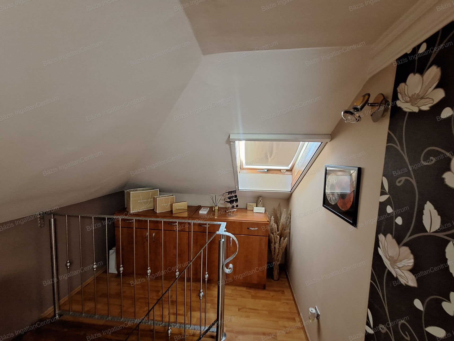 A tetőtérben két félszoba, egy gardrób, valamint egy előtér folyosóval található, ahonnan egy kisebb erkélyre lehet kilépni. A ház téglaépítésű, fűtését konvektorok biztosítják, ugyanakkor minden szobában hűtő-fűtő klíma is működik. A biztonságról kamerarendszer és riasztó gondoskodik, mind a házban, mind az udvaron.