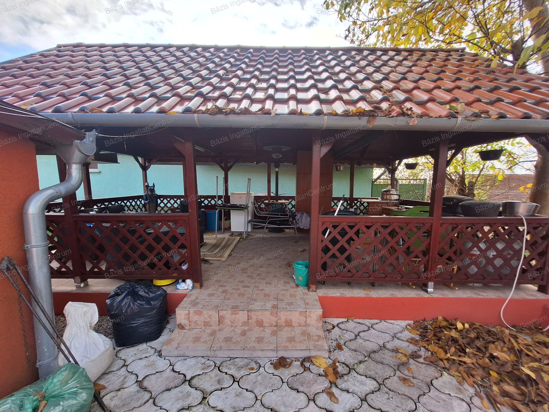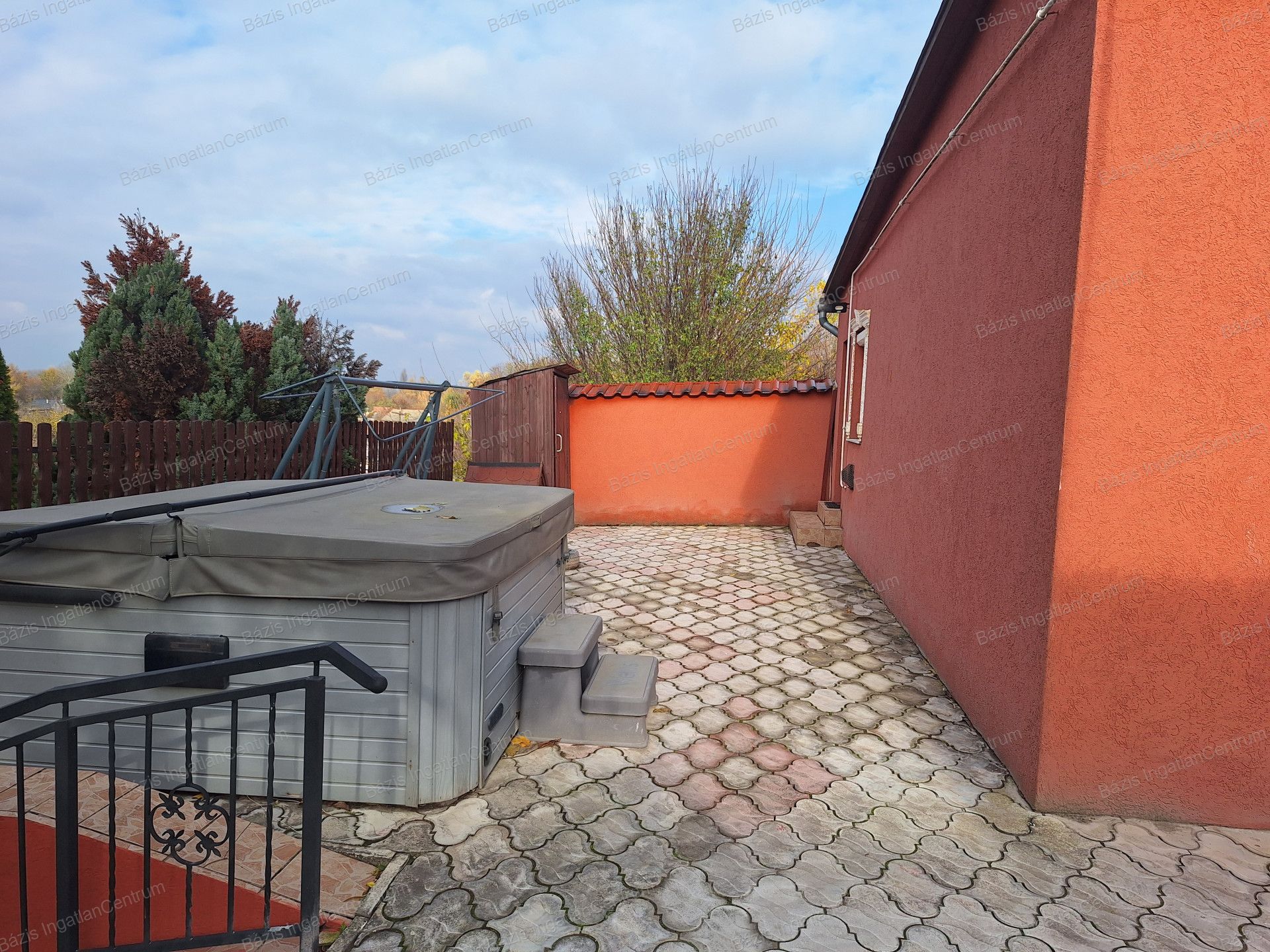 Az udvar külön kiemelt előnye a fedett főzőhelyiség, amely kiválóan alkalmas családi és baráti összejövetelekhez; alatta egy pince kapott helyet. A telken található egy lebetonozott terület is, amely alkalmas medence telepítésére.