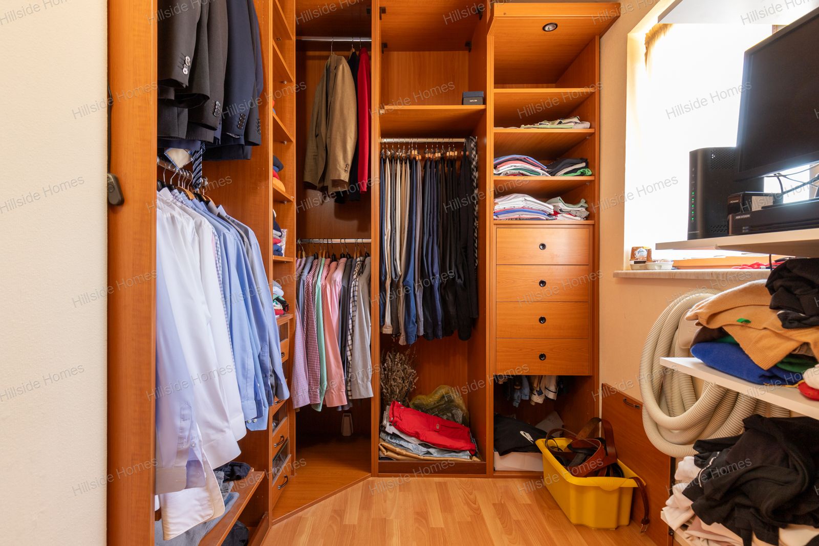 Emelet: Három hálószoba, gardróbszoba, prémium burkolatokkal készült fürdőszoba masszázskabinnal, szennyesledobóval és törölközőszárítóval.
