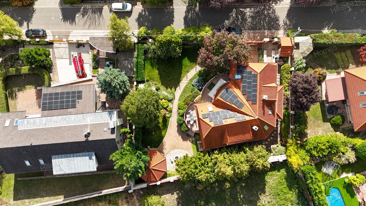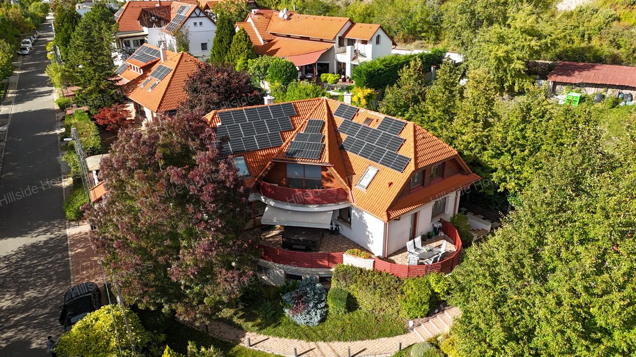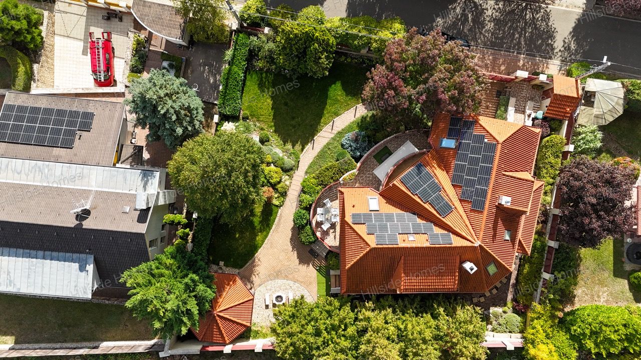 Az egész házban padlófűtés és hűtő-fűtő klímák gondoskodnak az ideális hőmérsékletről, a napelemek pedig jelentősen csökkentik az energiafelhasználást.