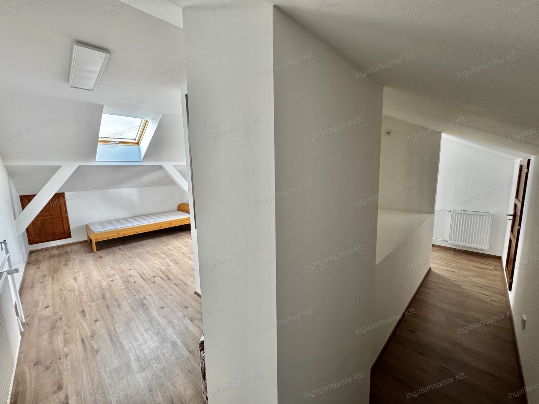 Elrendezését tekintve kiváló: előszoba, nappali, zuhanyzós + WC-s fürdőszoba, konyha, kamra, az emeleten szintén fürdőszoba káddal és WC-vel, 2 hálószoba, gardrób, még egy emelettel feljebb pedig hatalmas szoba saját gardróbbal. A padlástér pakolható.