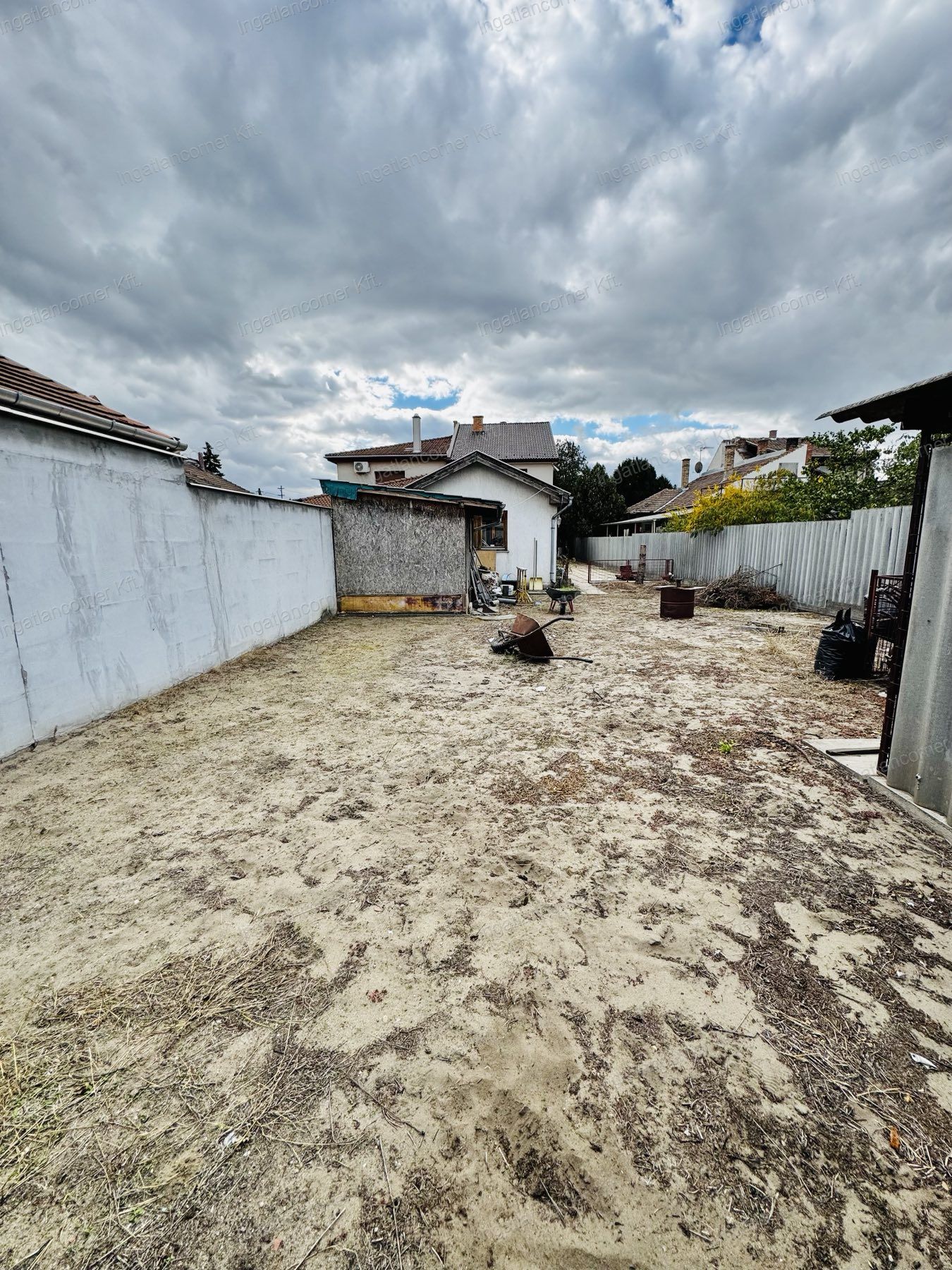 A hátsó telek részen található egy fa szerkezetű tároló helyiség is, ami mozdítható. Amennyiben erre nincs szüksége a leendő vásárlónak a tulajdonos elviszi.