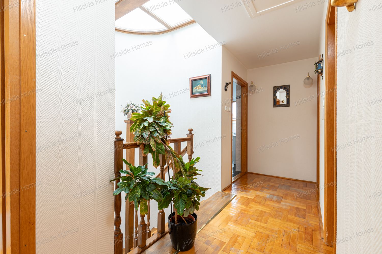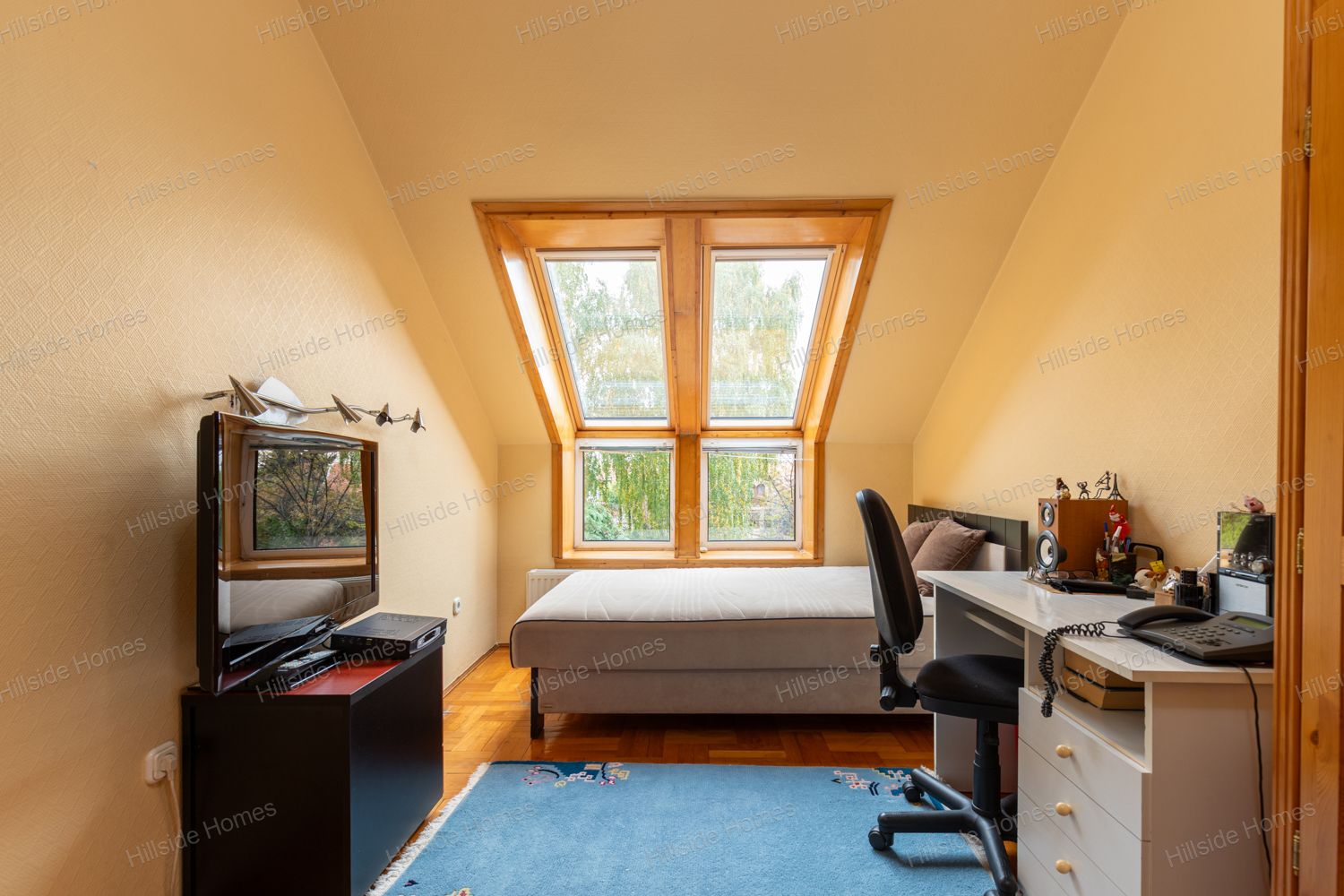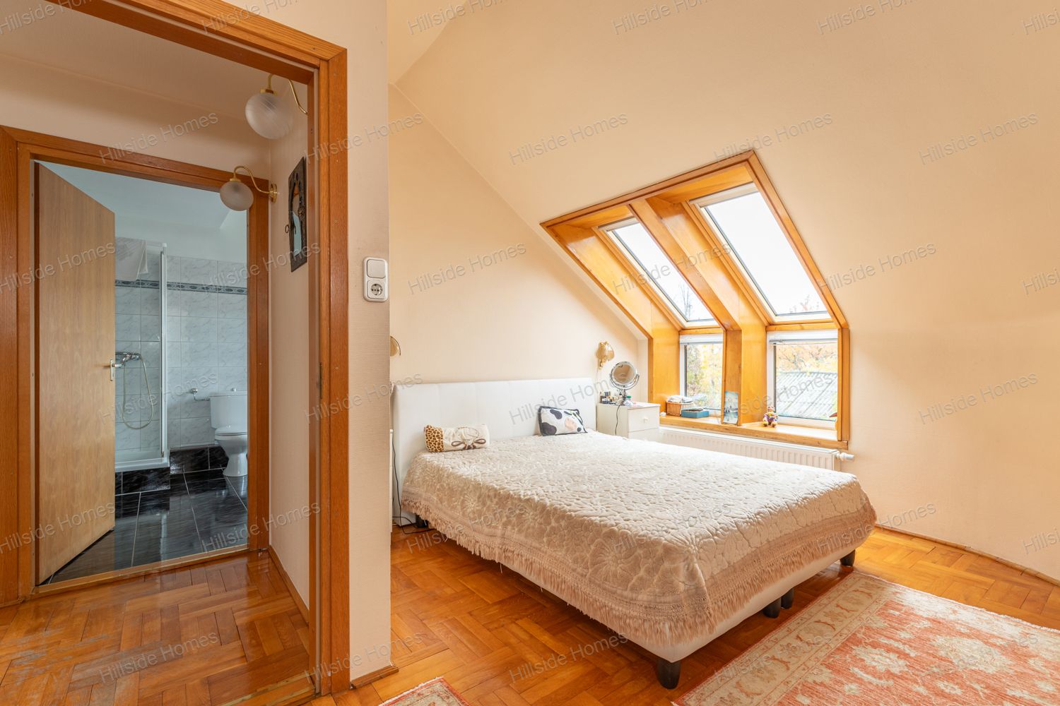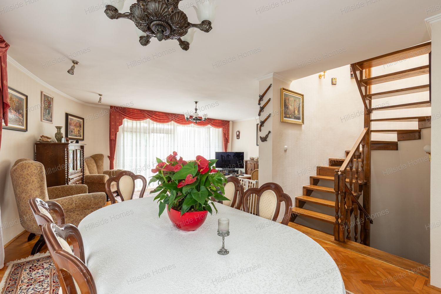 A 1994-ben épült, igényesen megtervezett, háromszintes ikerházfél szintenként 70 m²-es, nettó 210 m²-es lakóterületet kínál, amelyet egy 24 m²-es terasz egészít ki, így kényelmes életteret biztosít. Tágas terei, időtálló anyaghasználata és átgondolt elrendezése révén ideális választás nagyobb családoknak, többgenerációs együttélésre vagy akár otthonról dolgozóknak, akik a zöldövezet nyugalmát keresik.