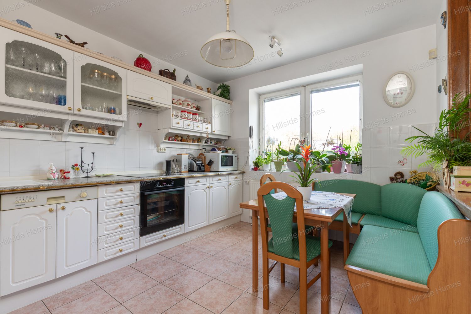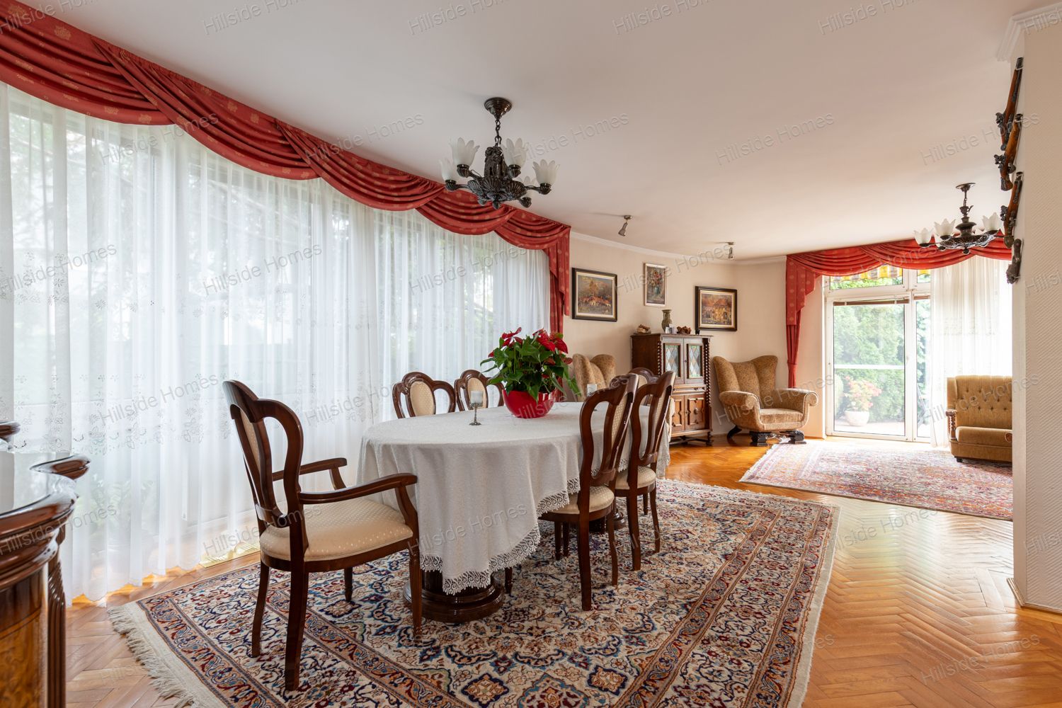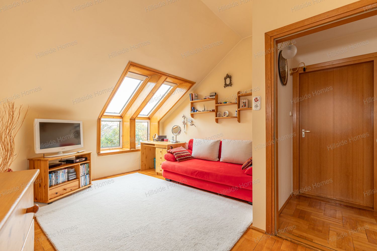 A 1994-ben épült, igényesen megtervezett, háromszintes ikerházfél szintenként 70 m²-es, nettó 210 m²-es lakóterületet kínál, amelyet egy 24 m²-es terasz egészít ki, így kényelmes életteret biztosít. Tágas terei, időtálló anyaghasználata és átgondolt elrendezése révén ideális választás nagyobb családoknak, többgenerációs együttélésre vagy akár otthonról dolgozóknak, akik a zöldövezet nyugalmát keresik.
