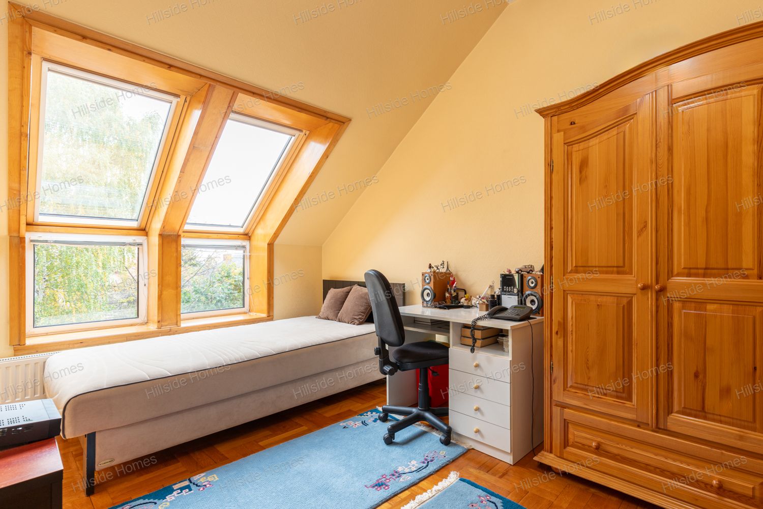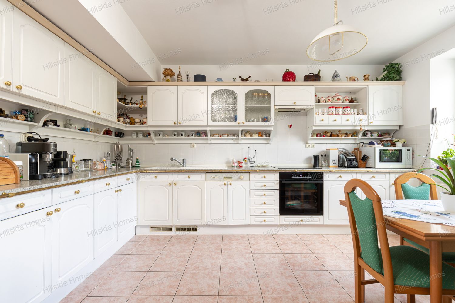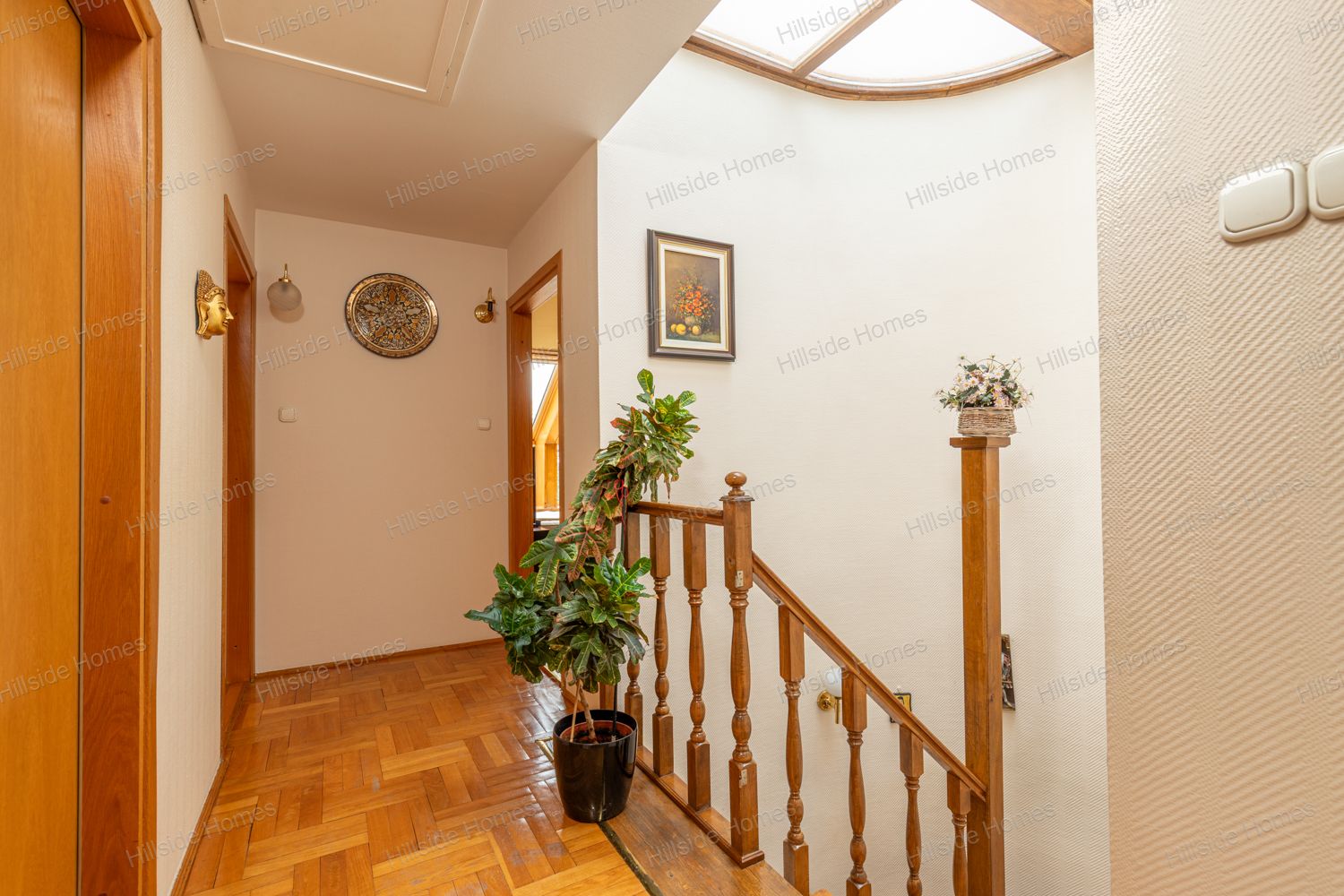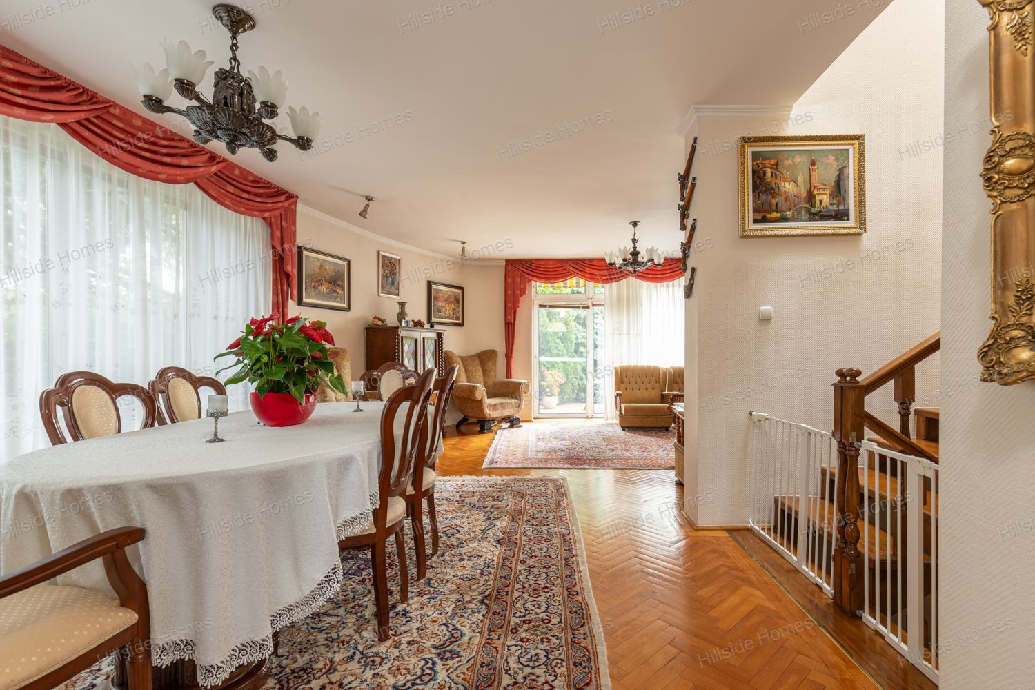 A 1994-ben épült, igényesen megtervezett, háromszintes ikerházfél szintenként 70 m²-es, nettó 210 m²-es lakóterületet kínál, amelyet egy 24 m²-es terasz egészít ki, így kényelmes életteret biztosít. Tágas terei, időtálló anyaghasználata és átgondolt elrendezése révén ideális választás nagyobb családoknak, többgenerációs együttélésre vagy akár otthonról dolgozóknak, akik a zöldövezet nyugalmát keresik.