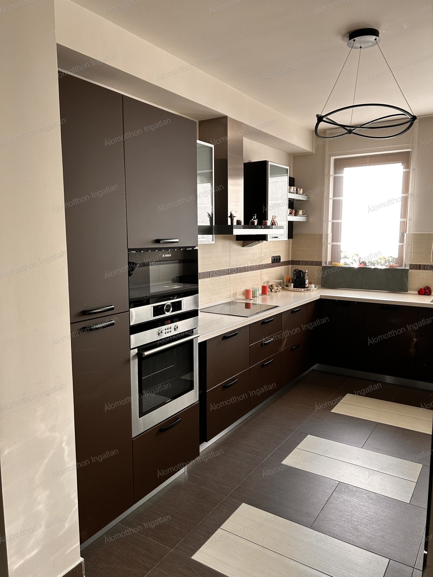 Fűtése BOSCH gázkazán gondoskodik padlófűtés + radiátoros hő leadással.