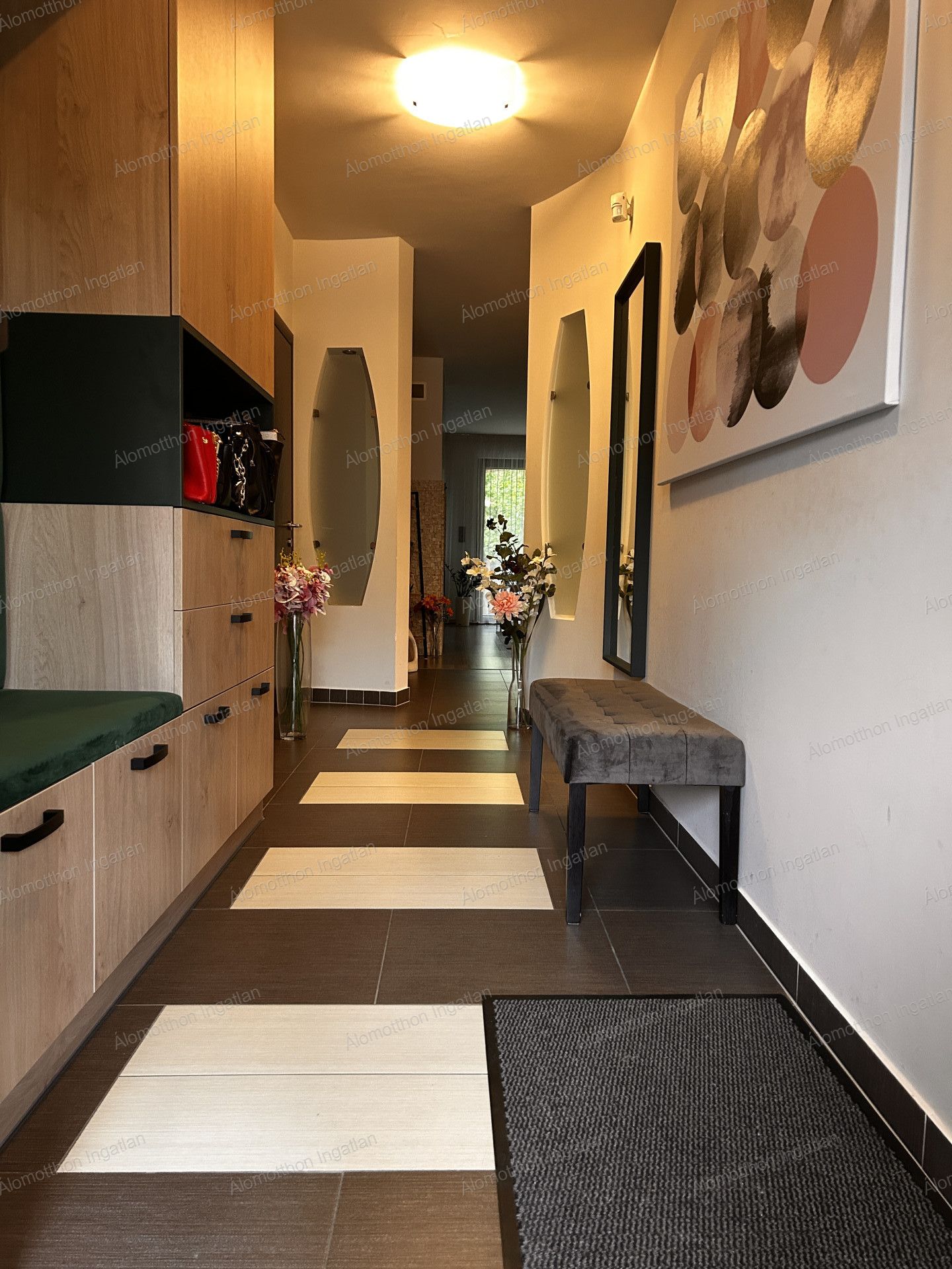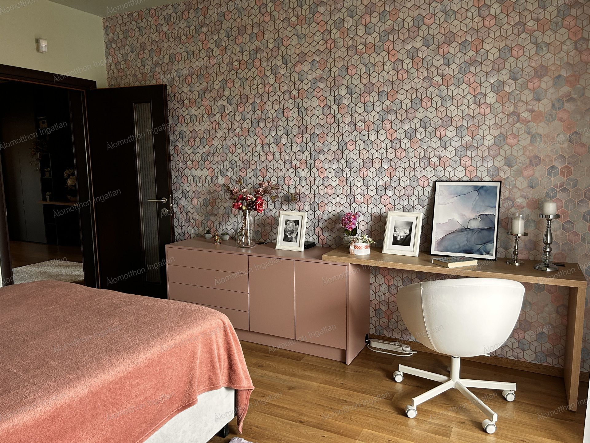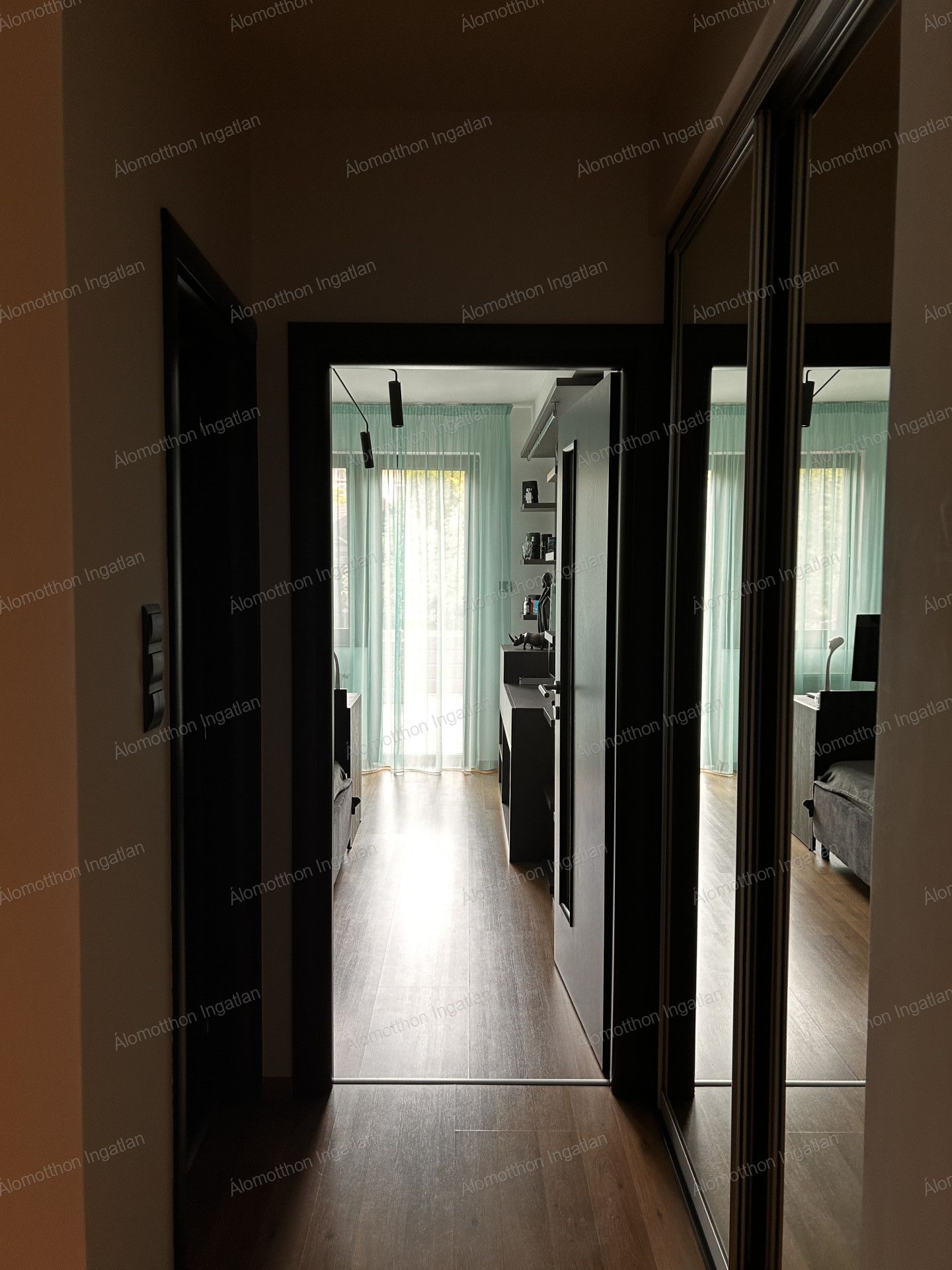 Kényelmes lépcsőn felérve közlekedő, ebből nyilik 3 külön nyiló szoba, két gardrobbal.