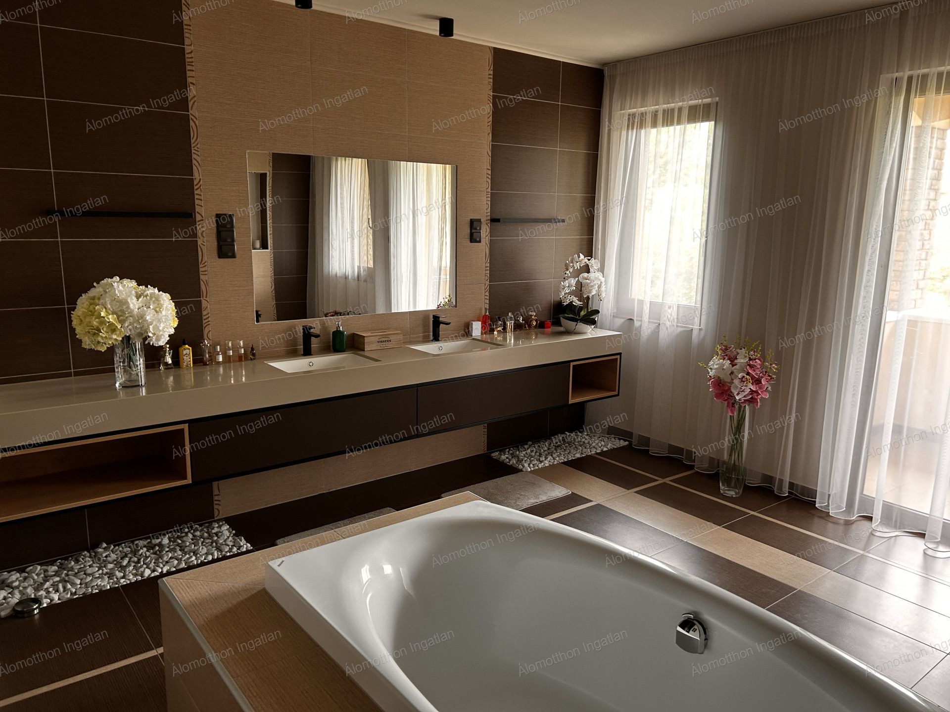 Az egyik szobaban külen kiépitésre került még egy fürdőszoba mellékhelyiséggel 4 nm-es loggia, szeparált gardróbbal .