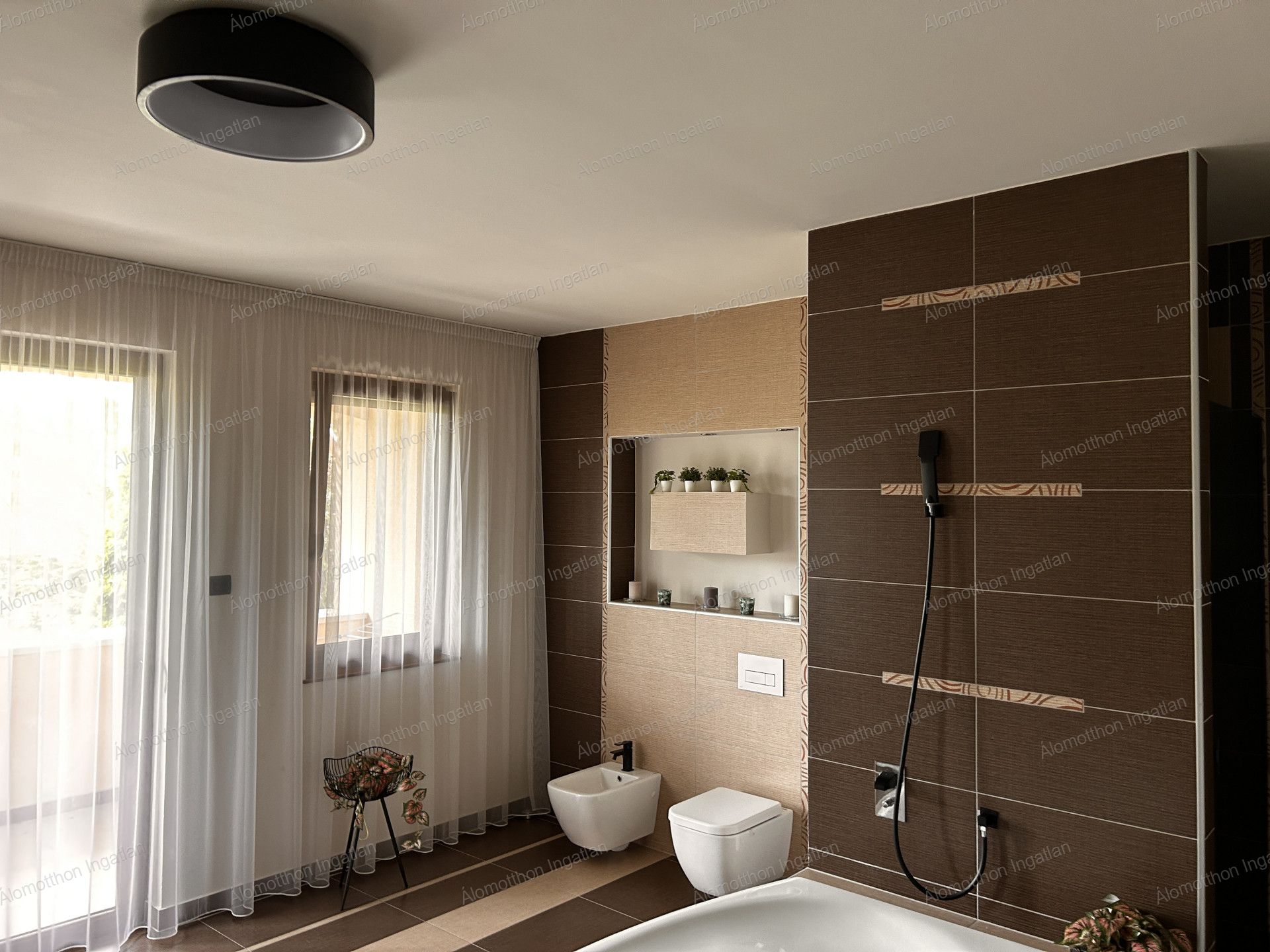 25 m2 fürdőszoba mellékhelység + bidé zuhany kabinnal, és káddal és szaunával lett kiépitve