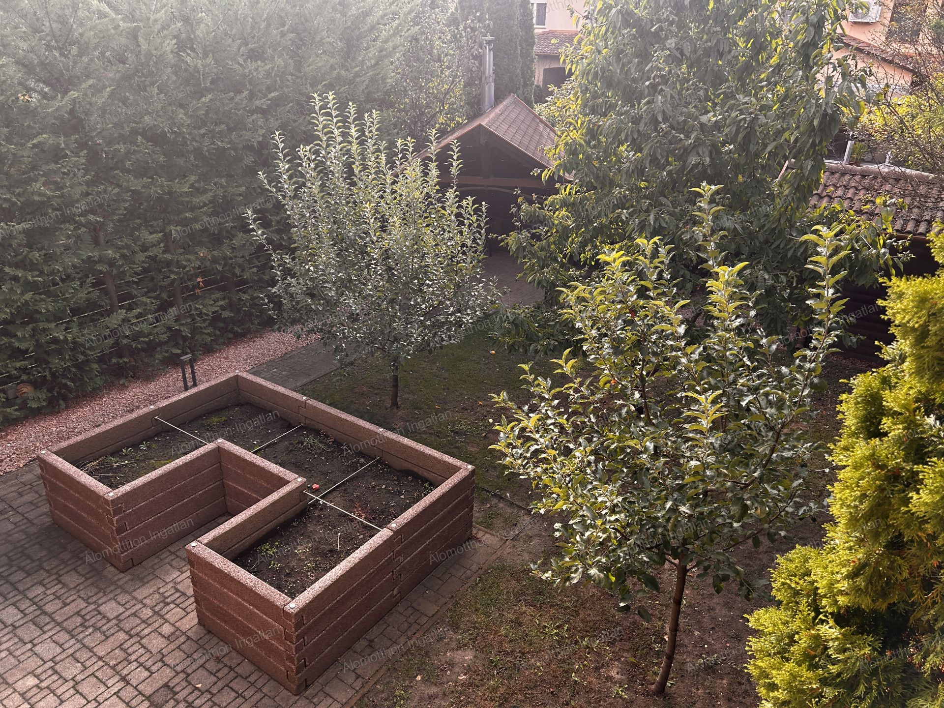 A telken kialakitottak egy fedett sütő -főző filagóriát, és egy kerti faház öntözőrendszer lett kiépítve.
