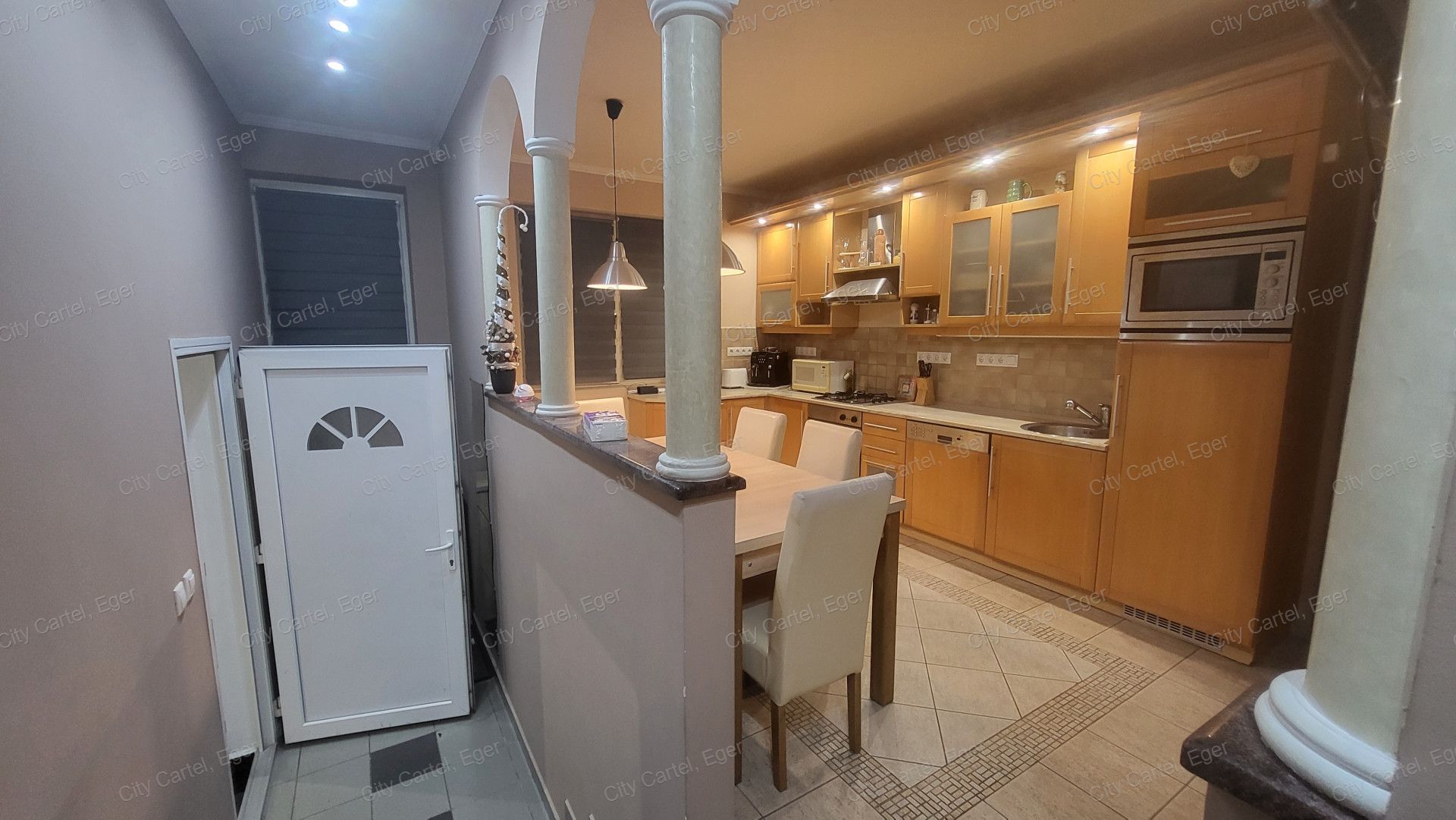 -  a  garázsból a lakásba  lépve  egy  előszobá, után pedig  egy nagy  konyha- étkezővel - kamrával