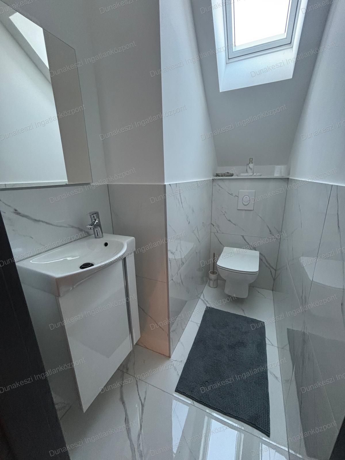A földszinten amerikai konyhás nappali (a konyhában beépített gépekkel), fürdőszoba, közlekedő és teraszkapcsolat található. Az emeleten 3 hálószoba, egy fürdő és egy külön WC kapott helyet. A pincében igényesen kialakított mosókonyha szolgálja a mindennapi kényelmet.