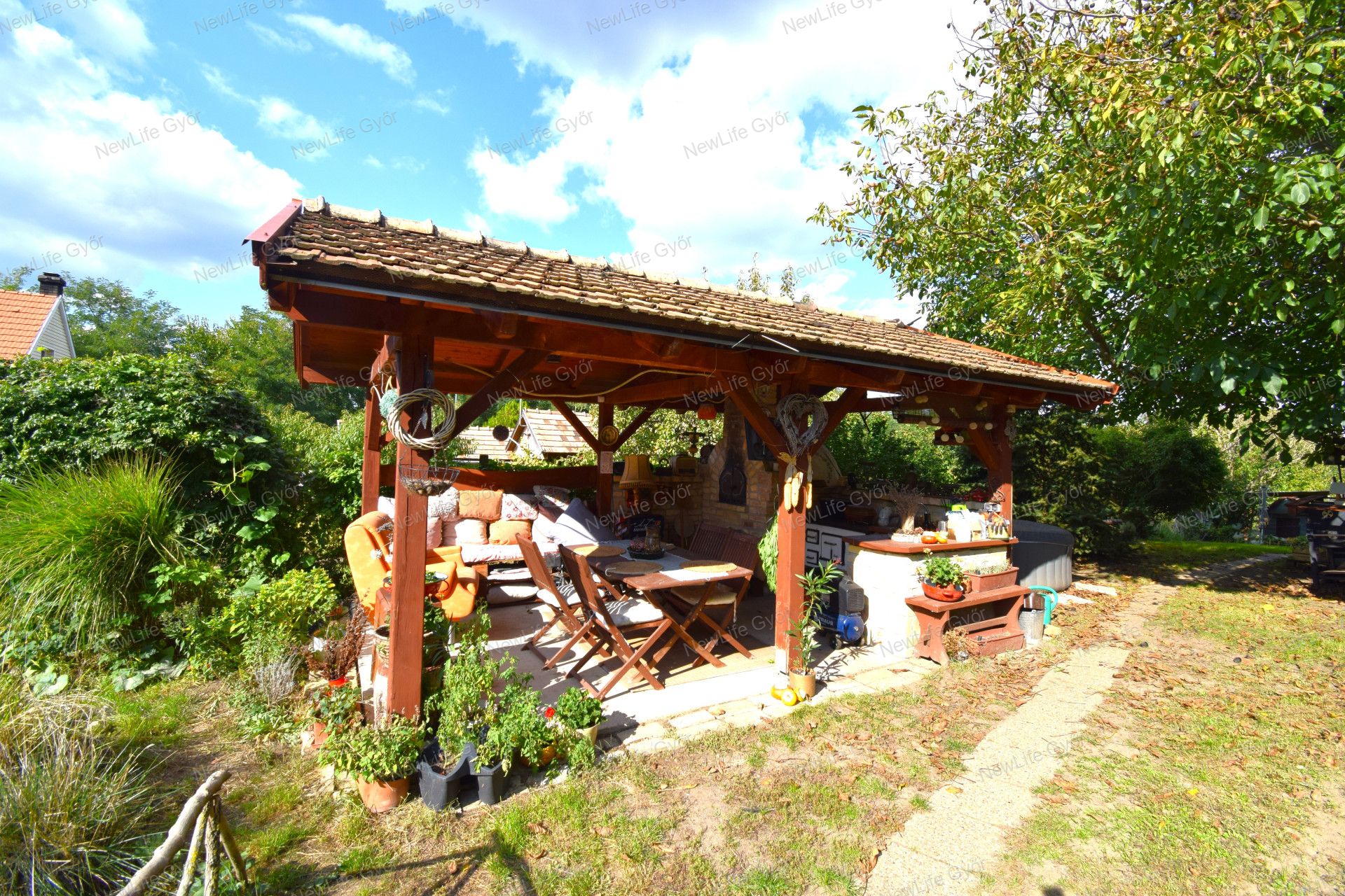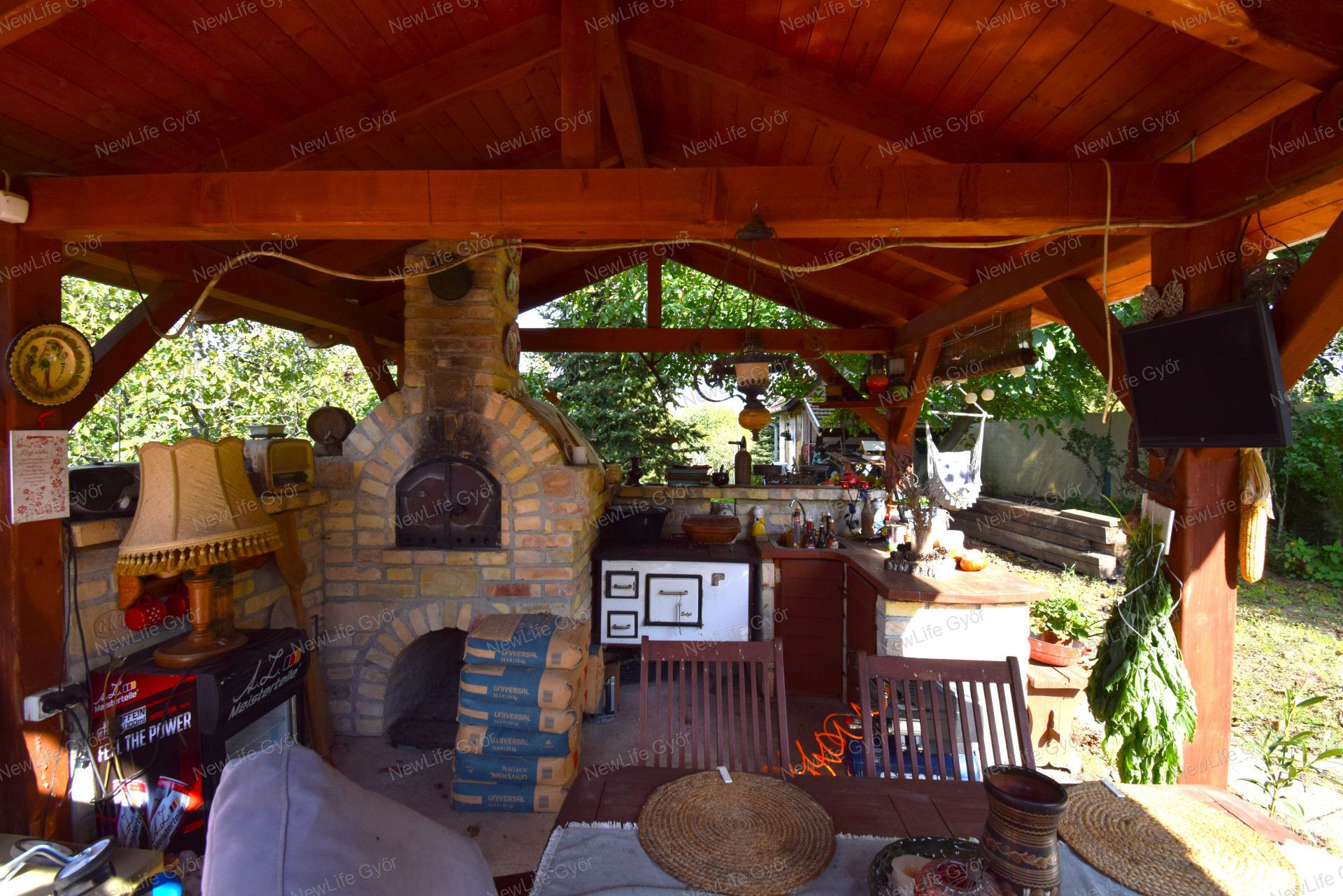 A ház mögött megtalálható egy kis díszpatak aranyhalakkal. Ezt követően szintén balkéz felől egy oldalról nyitott nyári konyha következik kemencével, mosogatóval, sparhelttel. A fa szerkezetű filagória (kb 20 m2) betoncserépfedést kapott, nagyszerű hely ez baráti összejövetelekre, kinti főzőcskére.