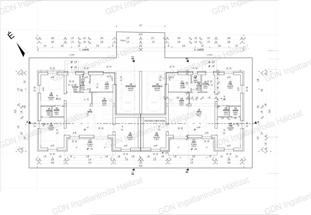 Jászberényben a Szatmári lakóparkban a Bársony utában, 798 m2-es telken, eladó 2db nettó 85,32m2-es + 12,83m2 terasszal és 16,31 m2-es gépkocsibeállóval rendelkező, 30-as Porotherm P30 N+F tégla falazóelemmel épült, fafödémes, 3 szoba plusz amerikaikonyha- nappalis kertkapcsolatos Ikerházfél.