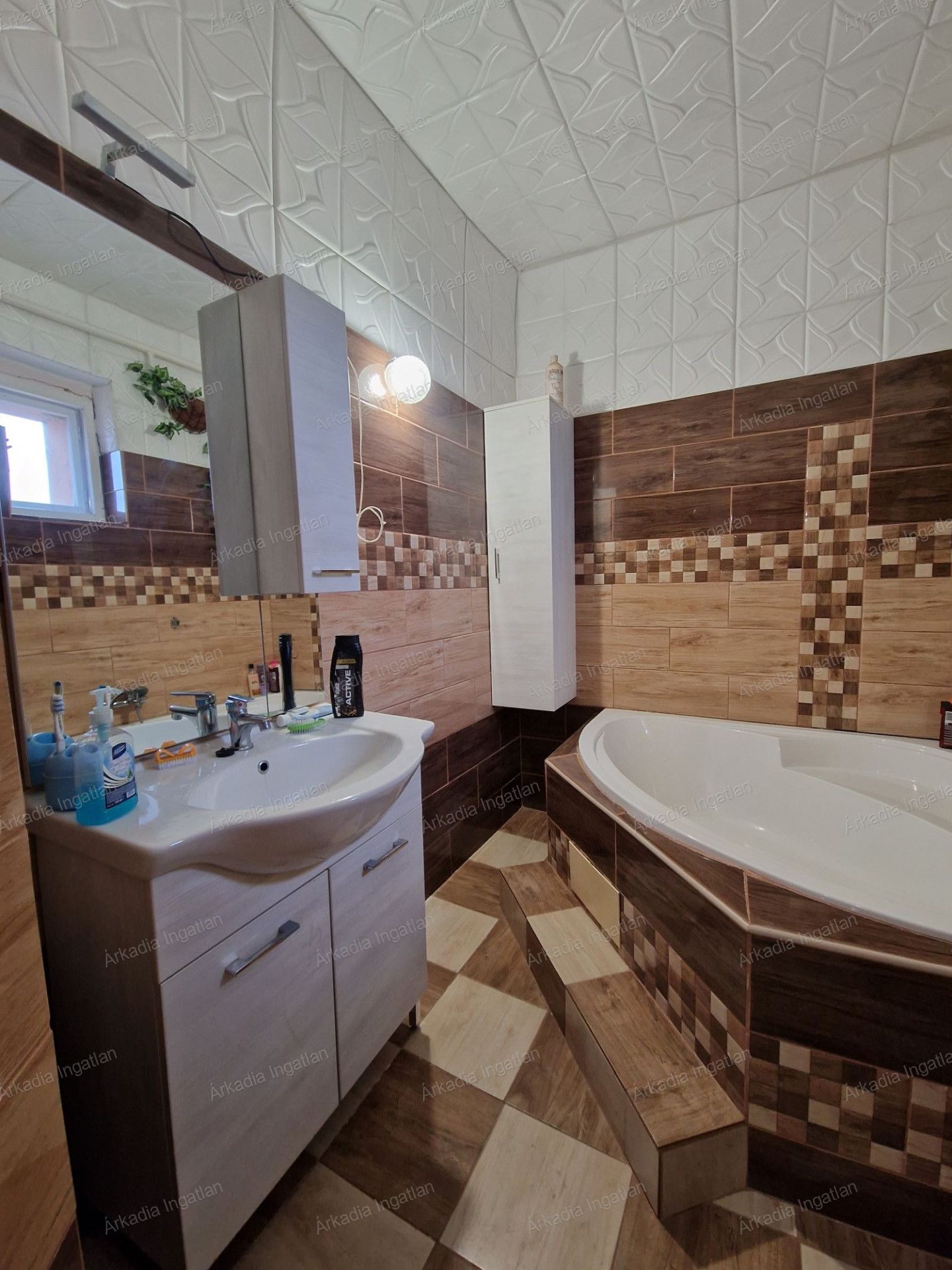 -Két modern fürdőszoba van, egy tusolós és egy tágasabb sarokádas