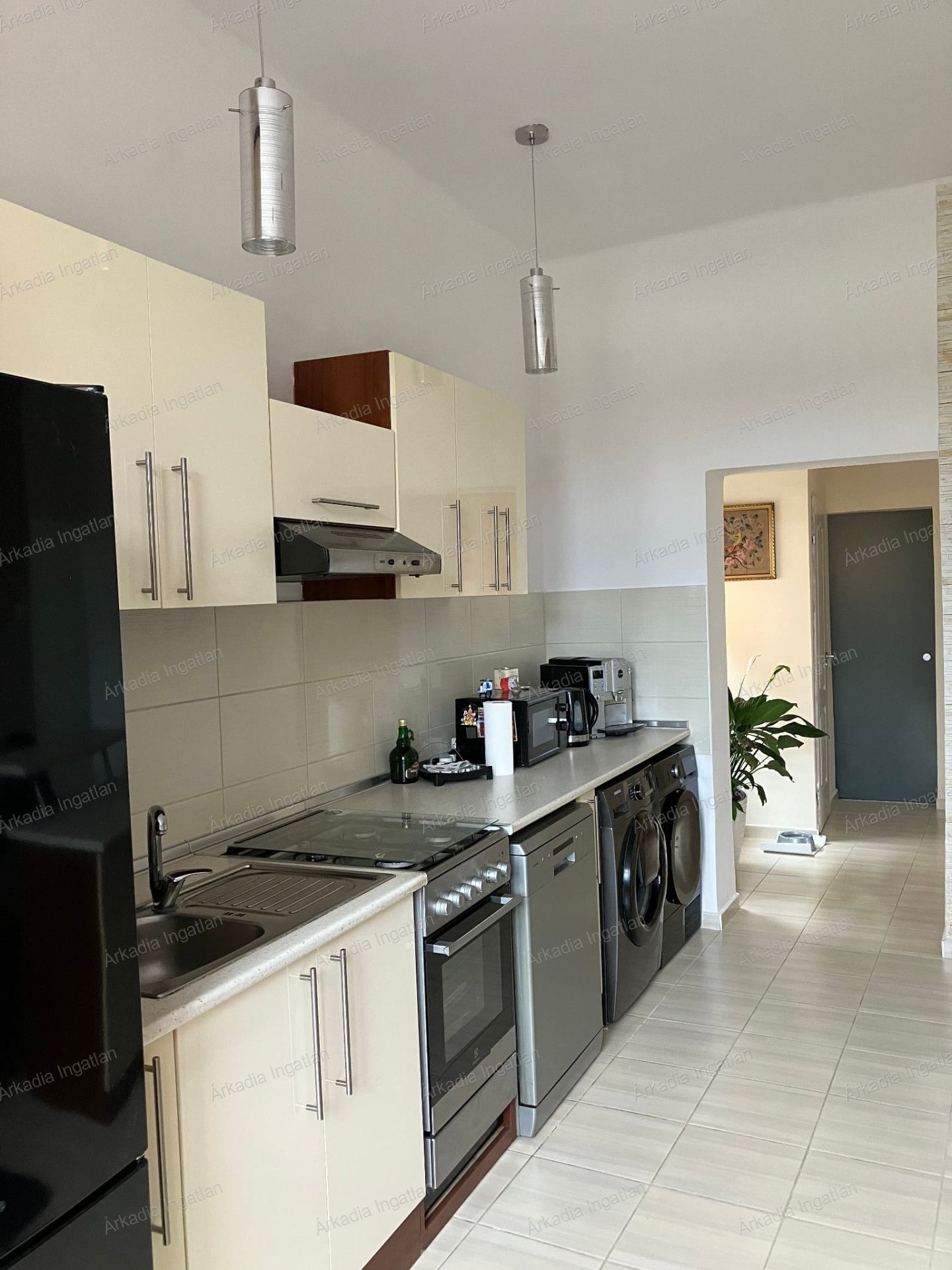Az ingatlanban 3 nagybelmagasságú (3,3 m) szoba található, ami laminált padlóburkolatú, nagyméretű konyha-étkező, korszerű, modern fürdőszoba, szauna, masszázs medence, masszázsgép biztosítja a felfrissülést, szibériai vörösfenyővel burkolt kerti szoba, ami minden évszakban használható, a házhoz pince és 30 nméteres garázs is tartozik, ami alkalmas 2 elektromos autó töltésére is.