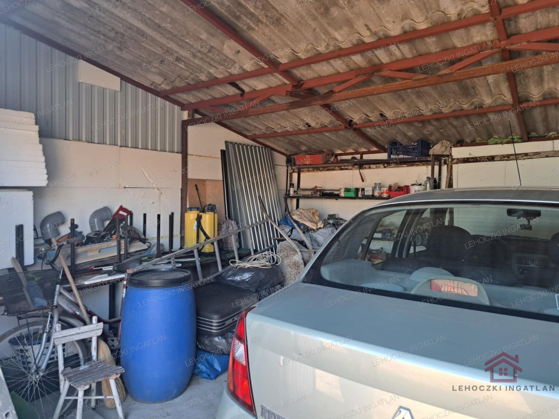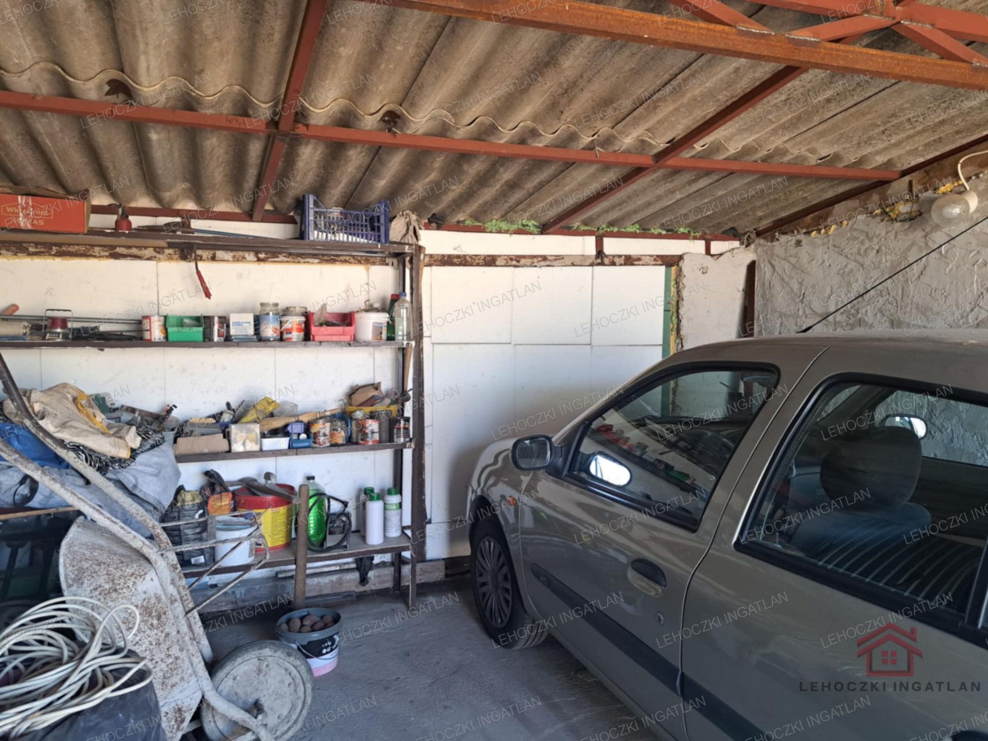 az udvaron dupla garázs, szerelőaknával,