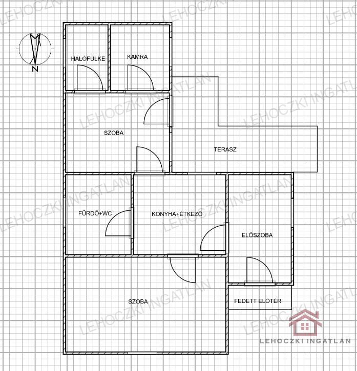 helységei: előszoba, 2 külön nyíló szoba, hálófülke, konyha-étkező, Fürdő (kád+zuhanyzó), Wc egy helyiségben, kamra, terasz, mely az egyik szobából is közvetlenül megközelíthető