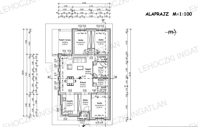Födémszerkezete fa födém, 30 cm-es födémhőszigeteléssel,