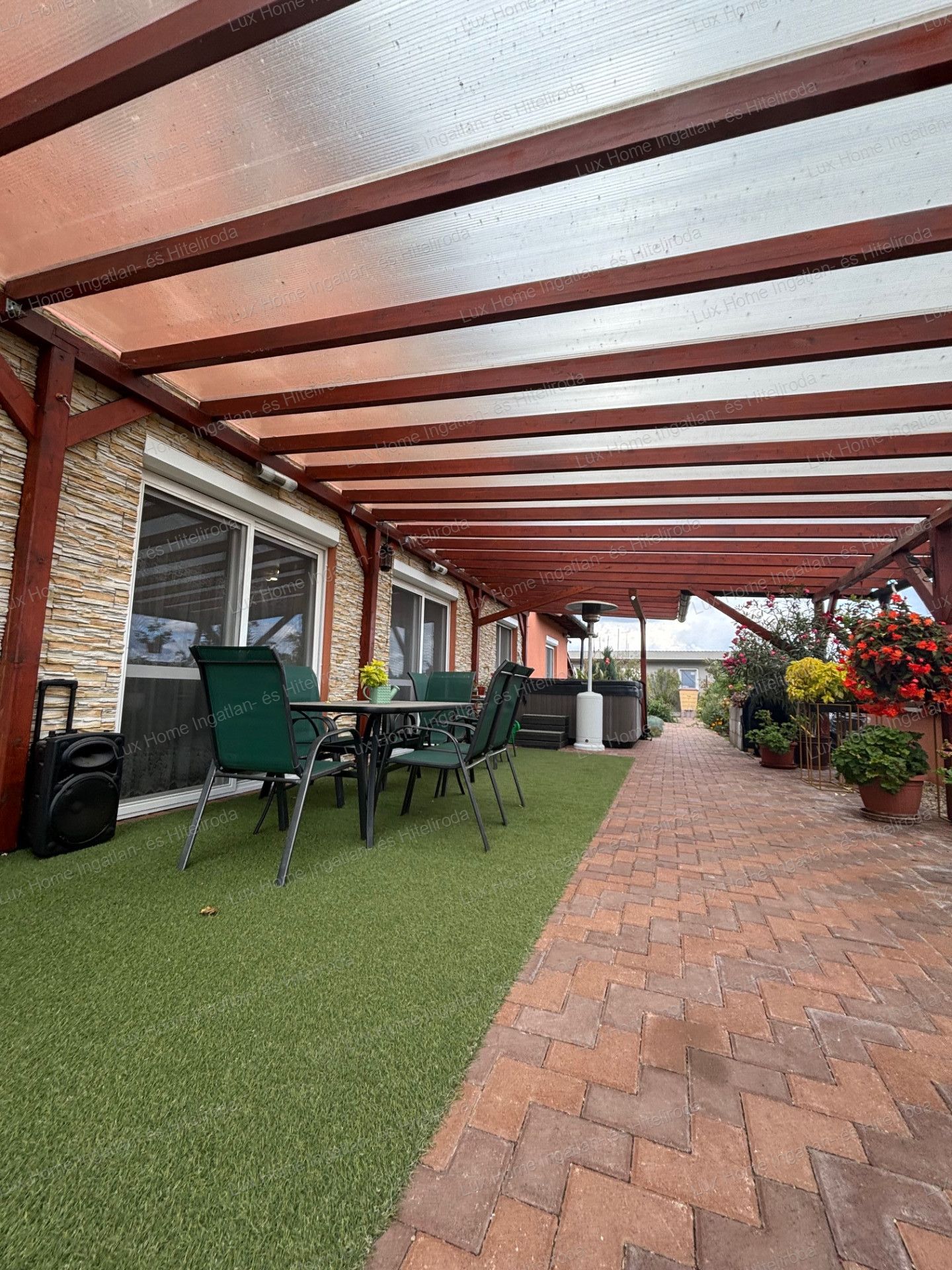 A hatalmas, fedett terasz ideális helyszín családi és baráti összejövetelekhez.