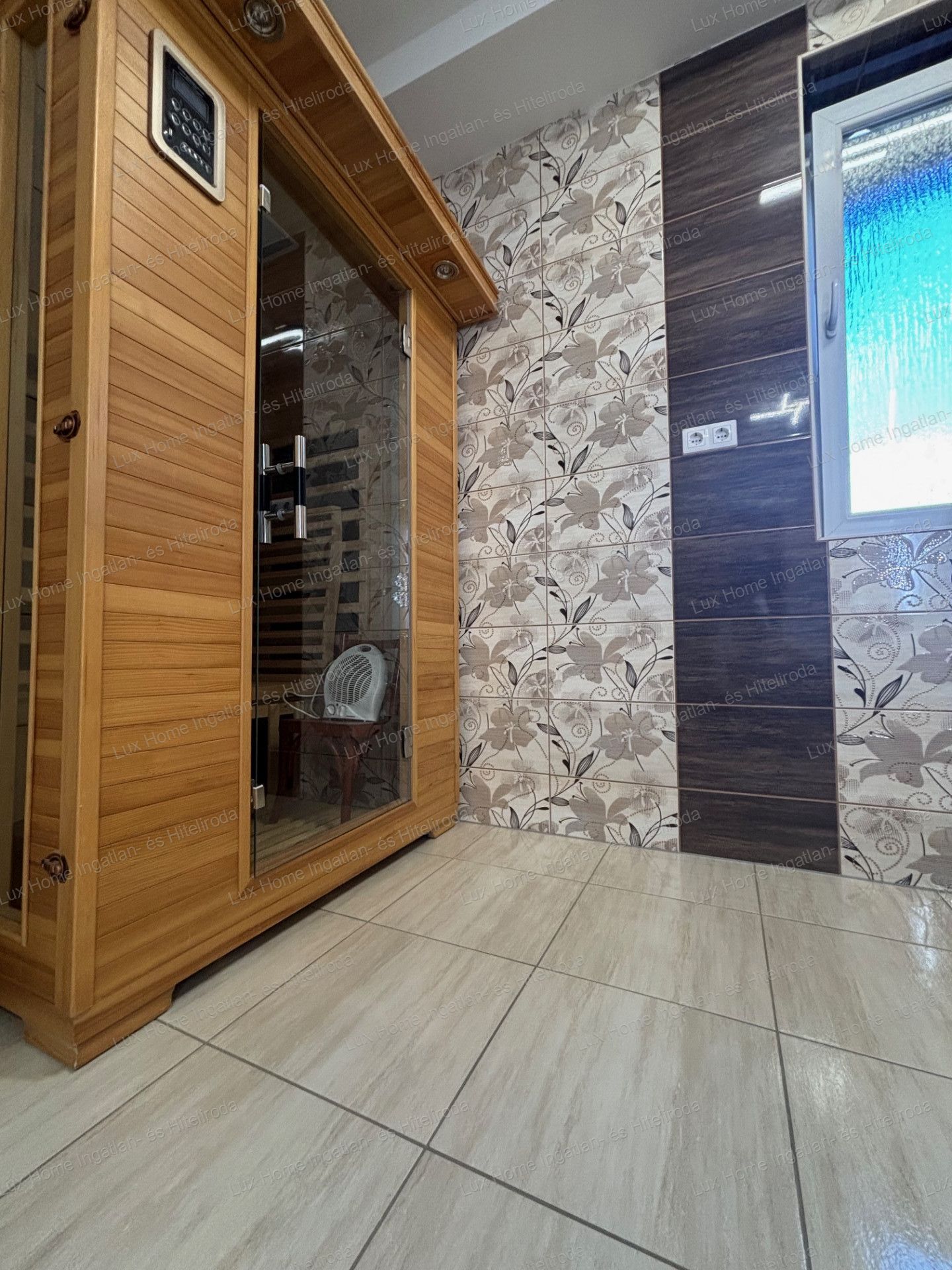 A galériás emelet egyedi hangulatot ad az otthonnak, a jakuzzi a teraszon és a szauna pedig a mindennapi kikapcsolódást szolgálja.