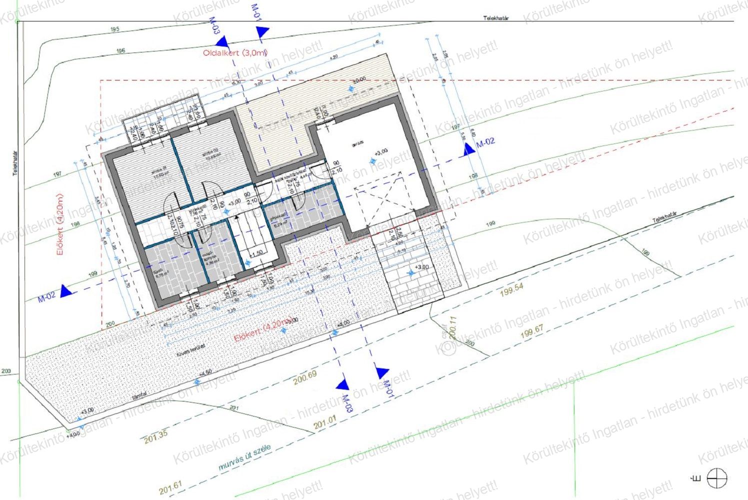 A ház 154 nm hasznos lakóterületű, két szintes. Az utcafronti szint a felső szint, itt található a garázs, két háló, fürdő mosókonyha és gépészeti helyiség, míg a kertkapcsolatos alsó szinten az amerikai konyhás nappali, egy háló, fürdő, külön wc, kamra és az étkező.