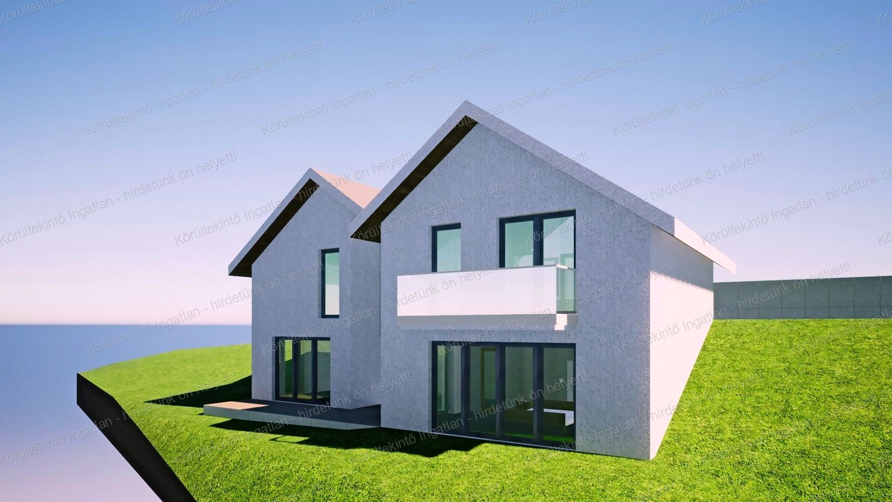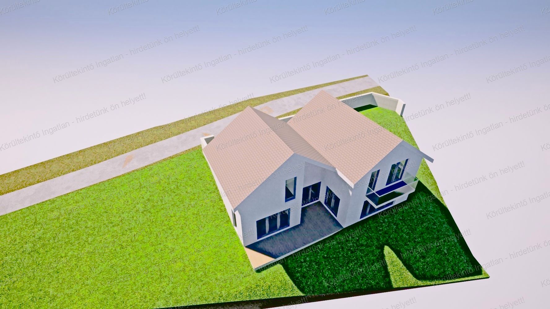 Jogerős bejelentéssel és az ahhoz tartozó teljes tervdokumentációval (statika, építész, gépész és elektromos kiviteli tervekkel) rendelkezik egy a képen látható családi házra.
