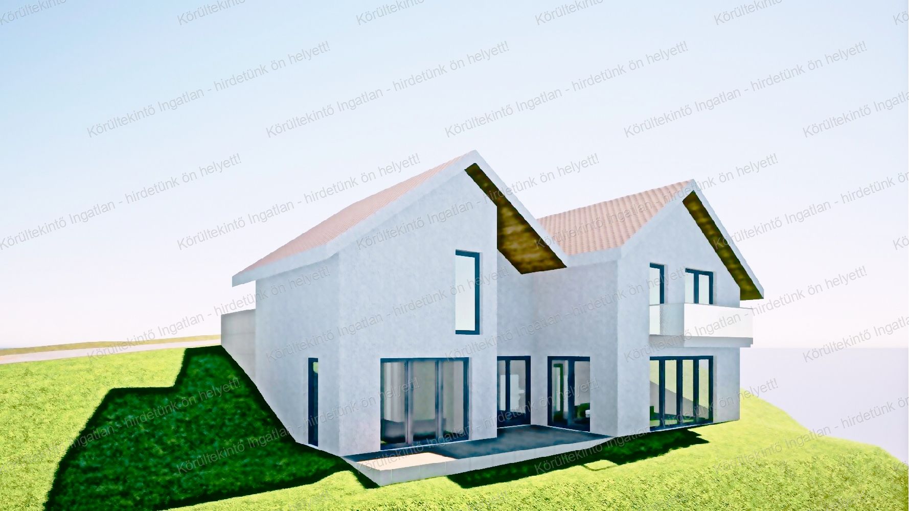 Jogerős bejelentéssel és az ahhoz tartozó teljes tervdokumentációval (statika, építész, gépész és elektromos kiviteli tervekkel) rendelkezik egy a képen látható családi házra.