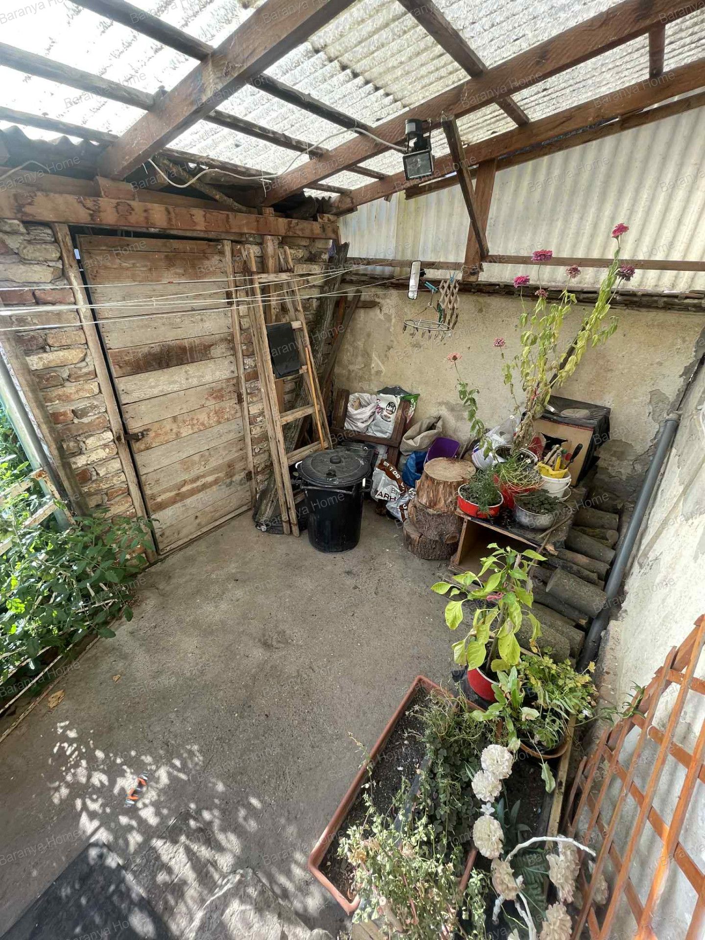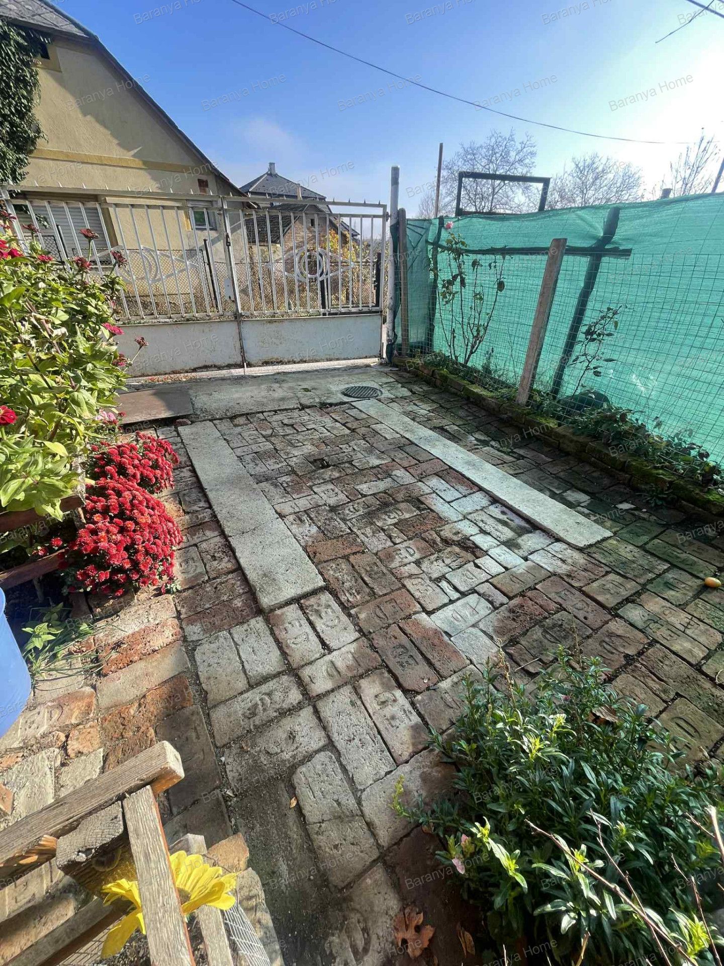 Az udvar körbekerített, saját bejáratú, ahogy az autóbeálló is.
