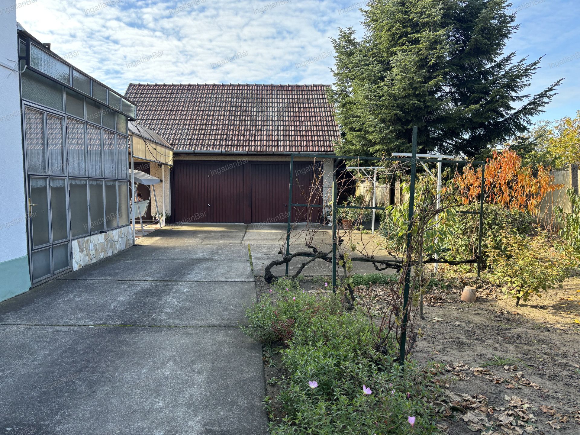 A kert makulátlanul rendben tartott, parkosított, több melléképülettel is rendelkezik, valamint dupla garázs és kinti wc is található rajta.