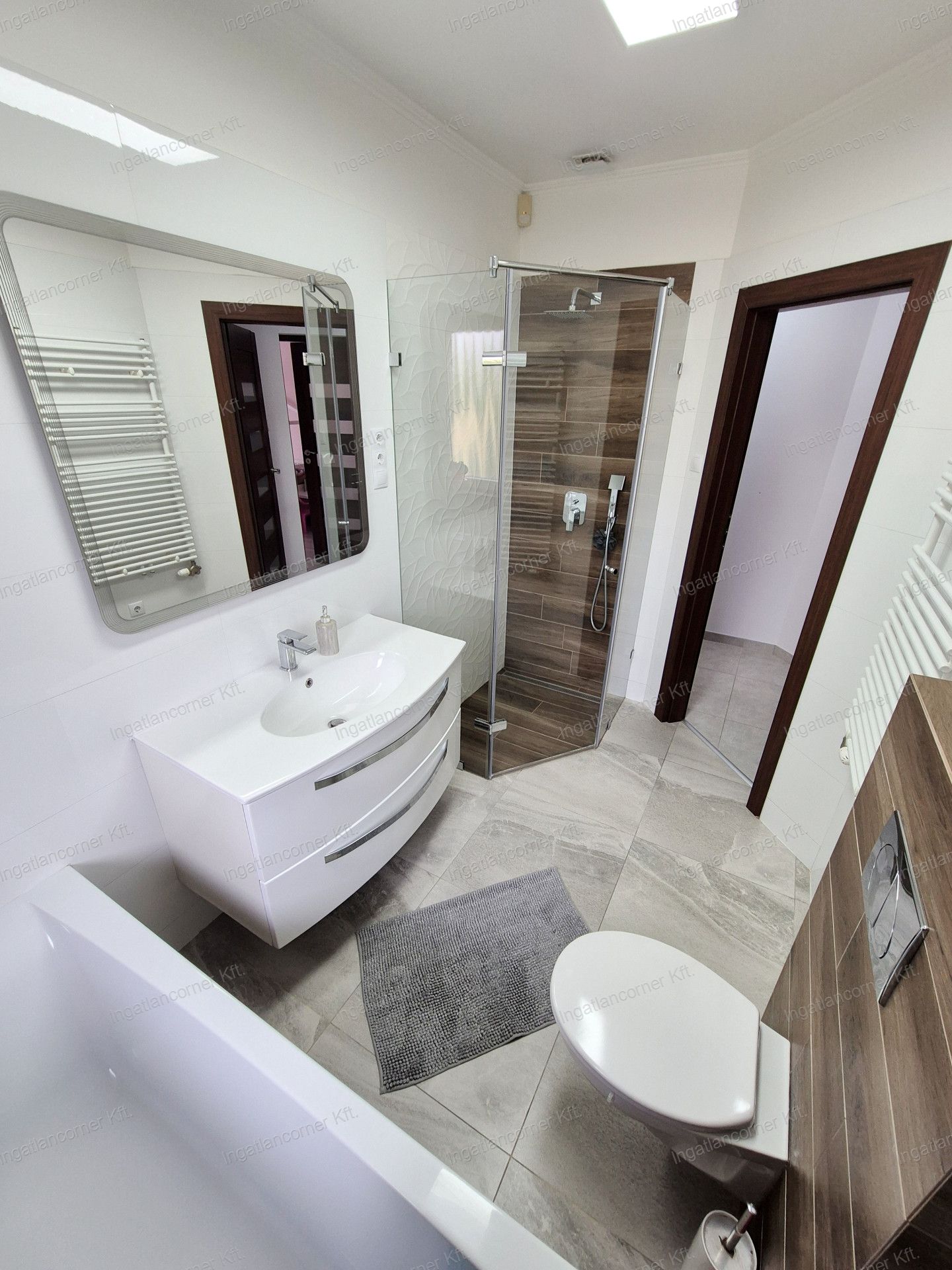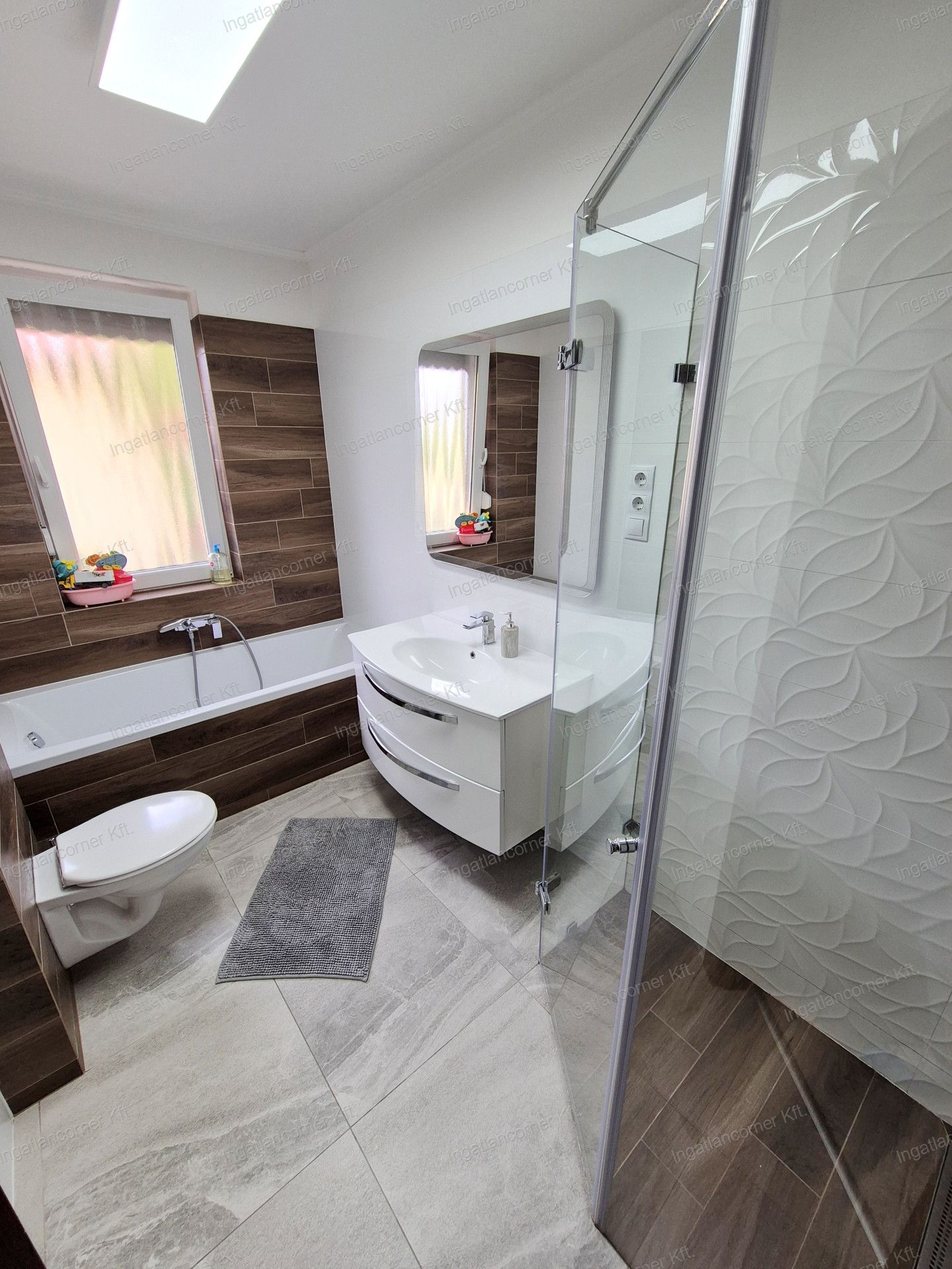 •FÜRDŐSZOBA (5,96m2) melyben plusz egy wc, új épített zuhany, kád és egy nagyméretű mosdó szekrénnyel érhető el.