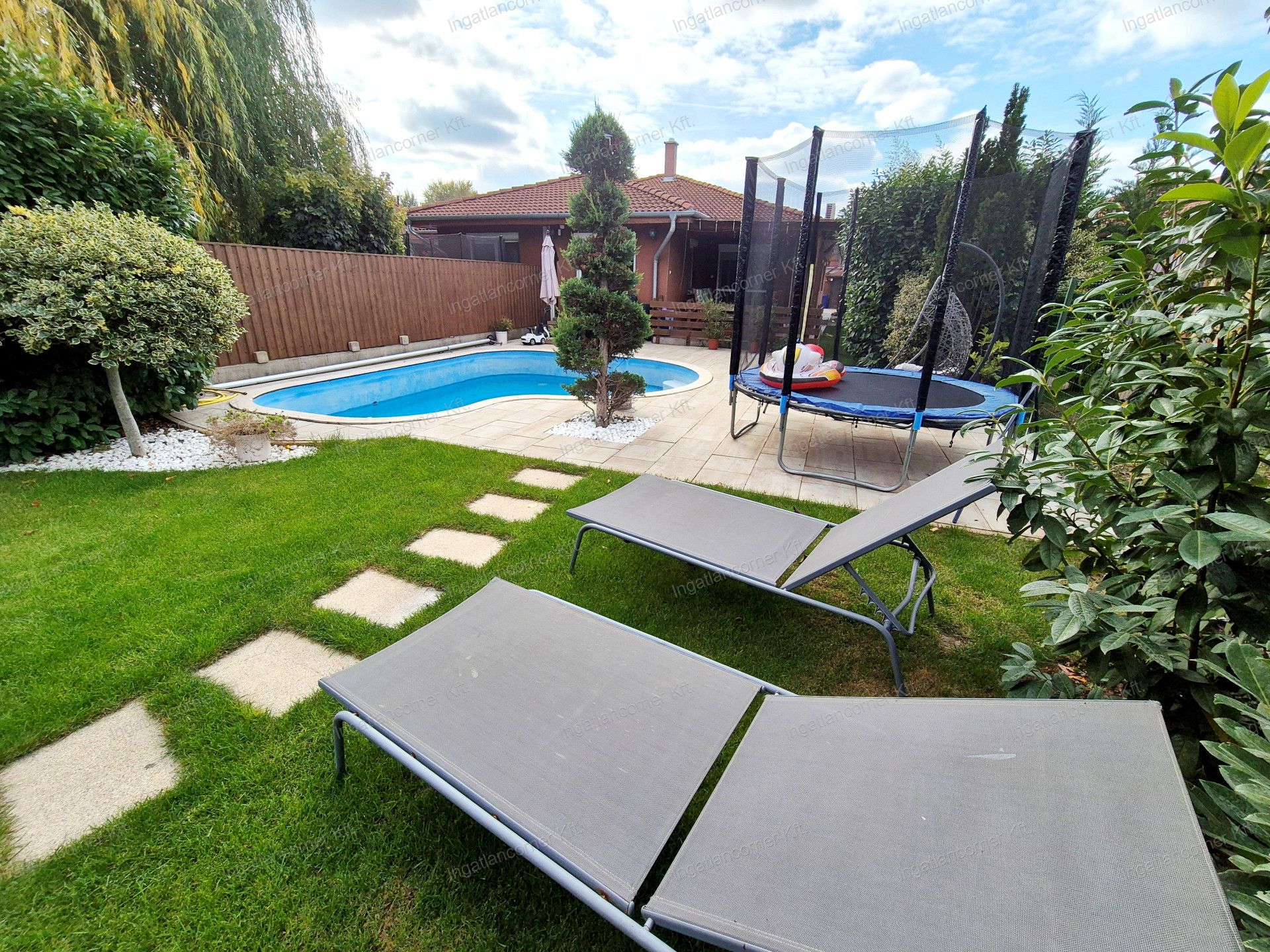 Dunaharaszti egyik legnyugodtabb mellékutcájában, 2010-ben DUPLA FALLAL épült, 106 m² alapterületű, EGYSZINTES, alacsony rezsijű, TELJESEN FELÚJÍTOTT ikerházi lakás eladó, 481 m²-es önálló, parkosított kerttel és FŰTHETŐ MEDENCÉVEL, ELEKROMOS AUTÓTÖLTŐVEL eladó!