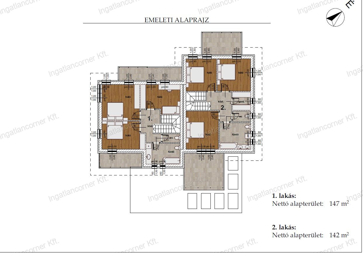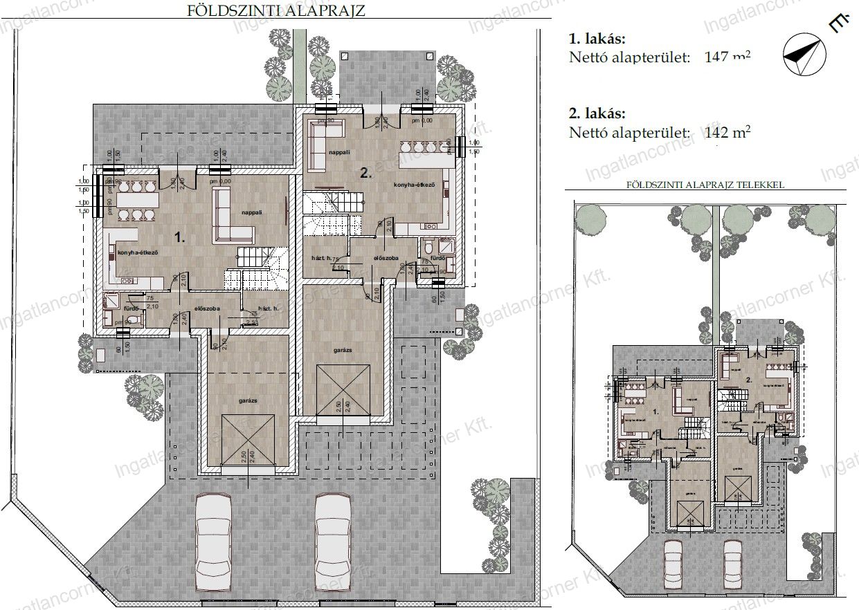 1.lakás: 142m2 nappali 3 hálószoba 177.500.000 Ft 500m2-es telekkel