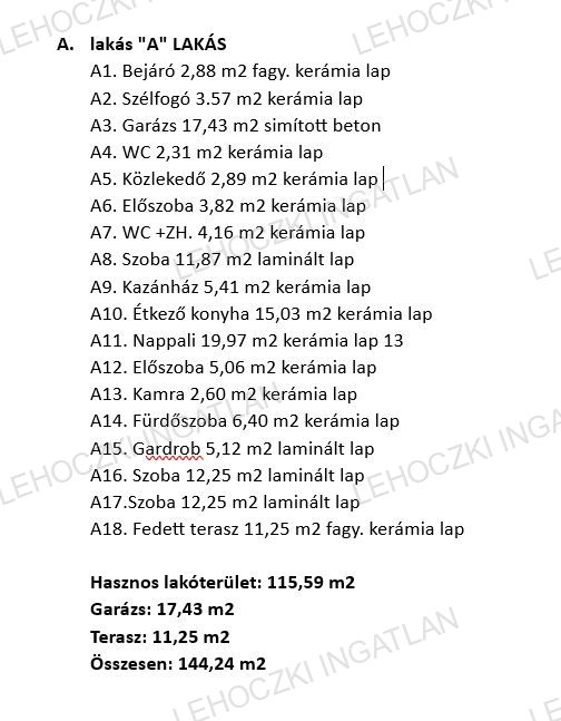 Lakótér 115.59 nm + 17,43 nm garázs + fedett terasz 11,25 nm