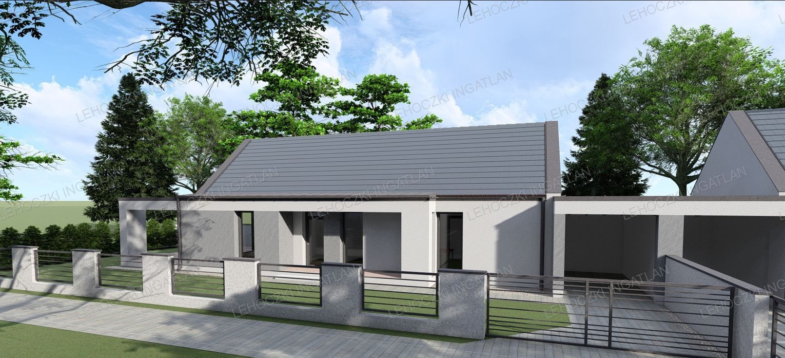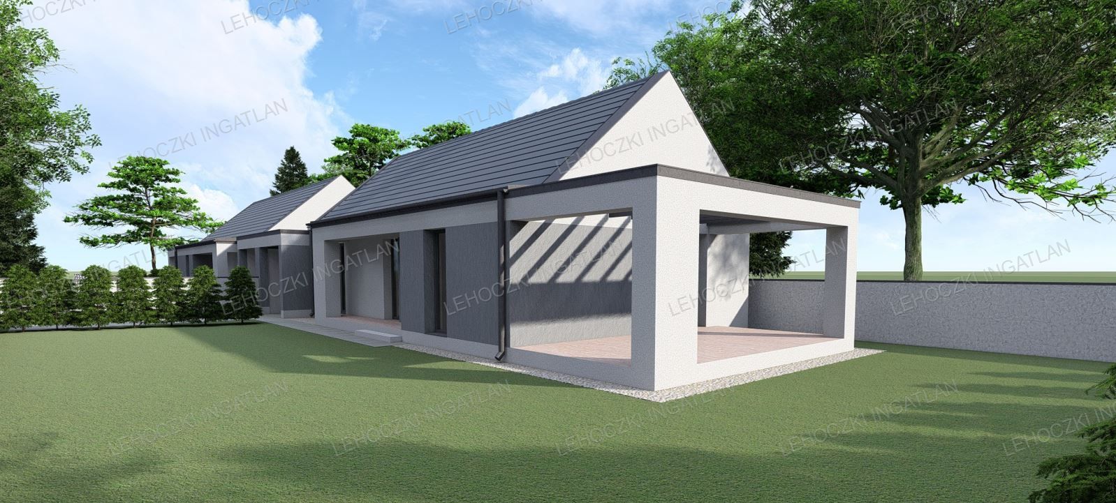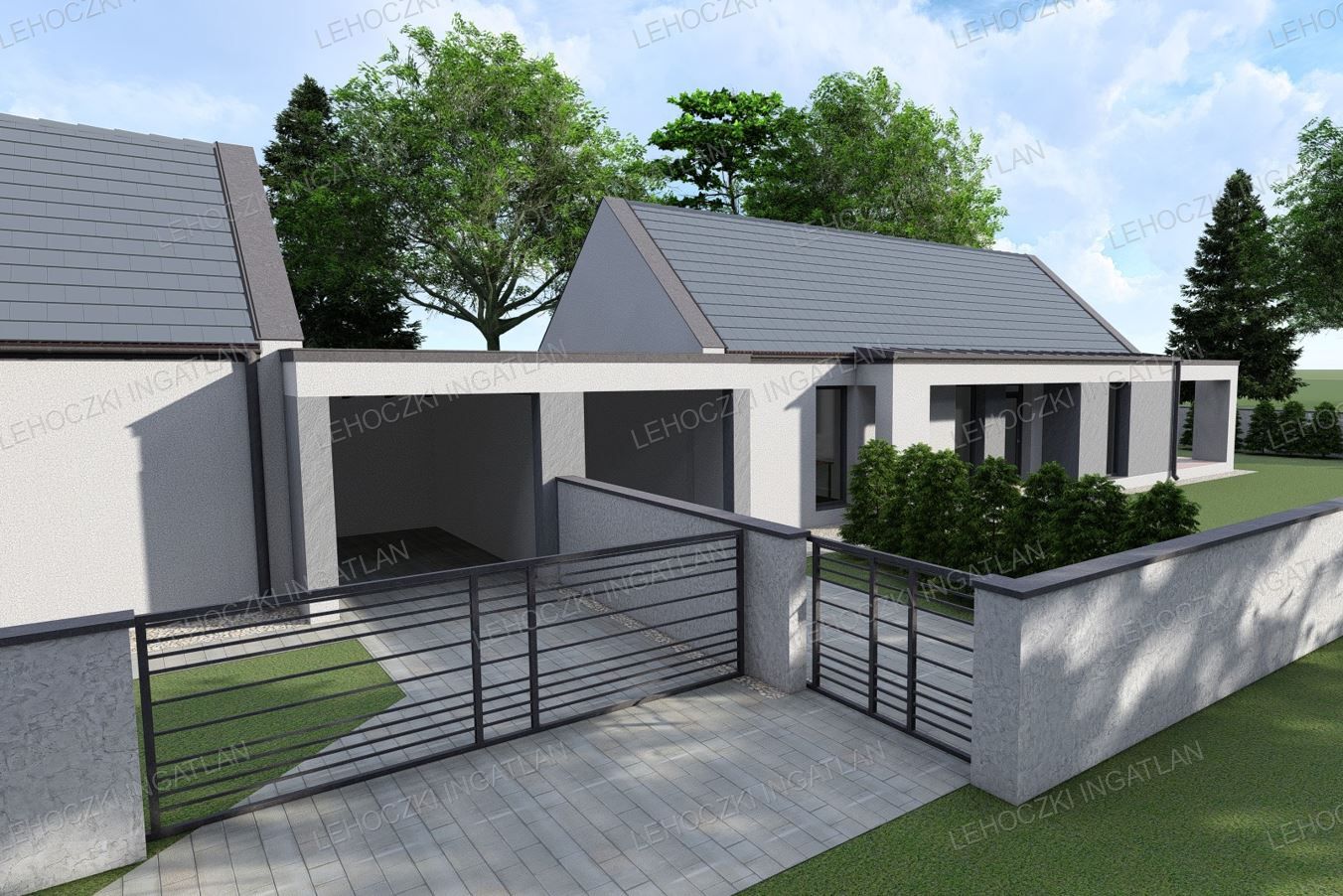Lakótér 80 nm + 15,66 nm fedett kocsibeálló, melyhez tartozik egy 17,72 nm-es nyitott terasz