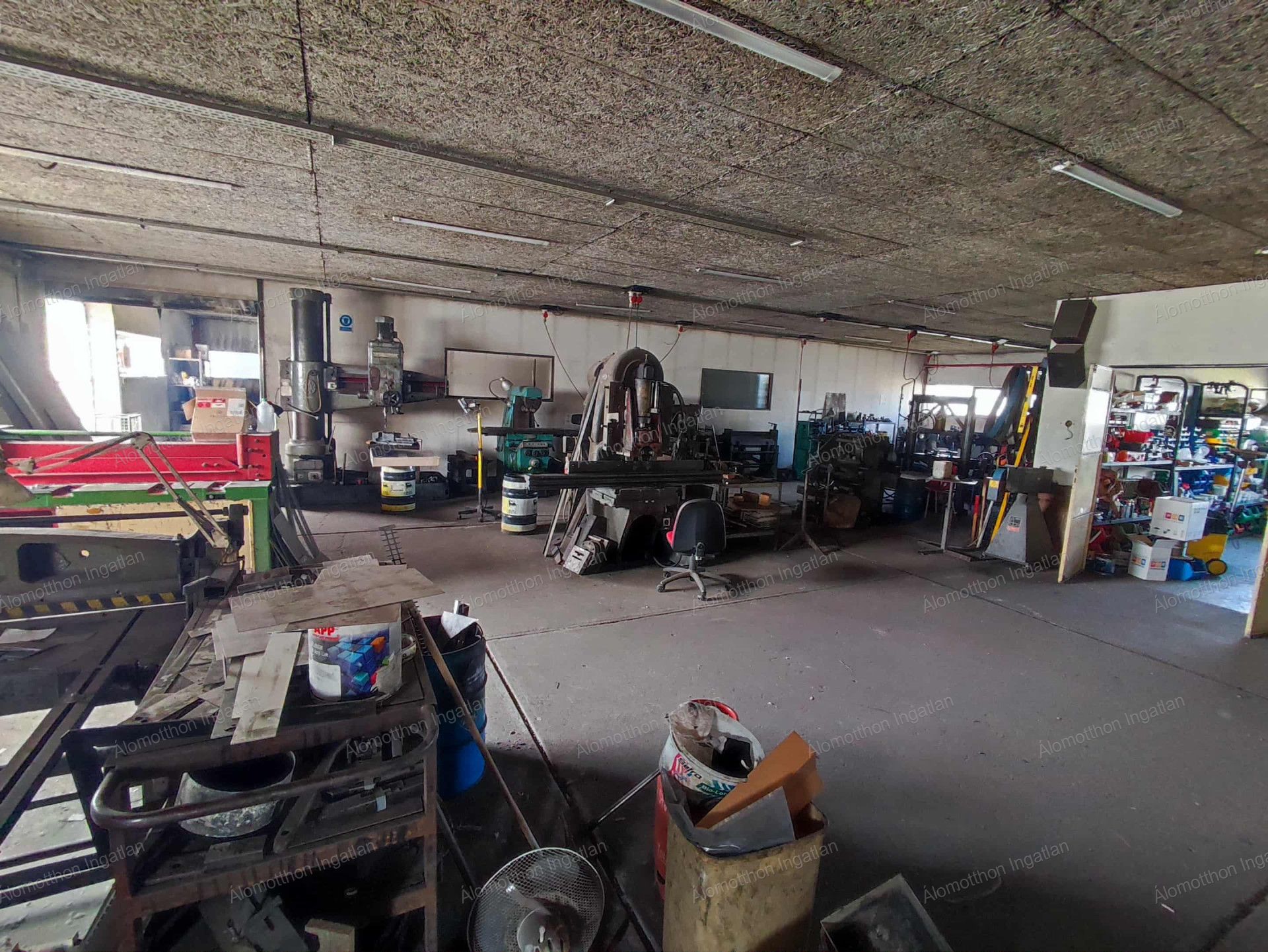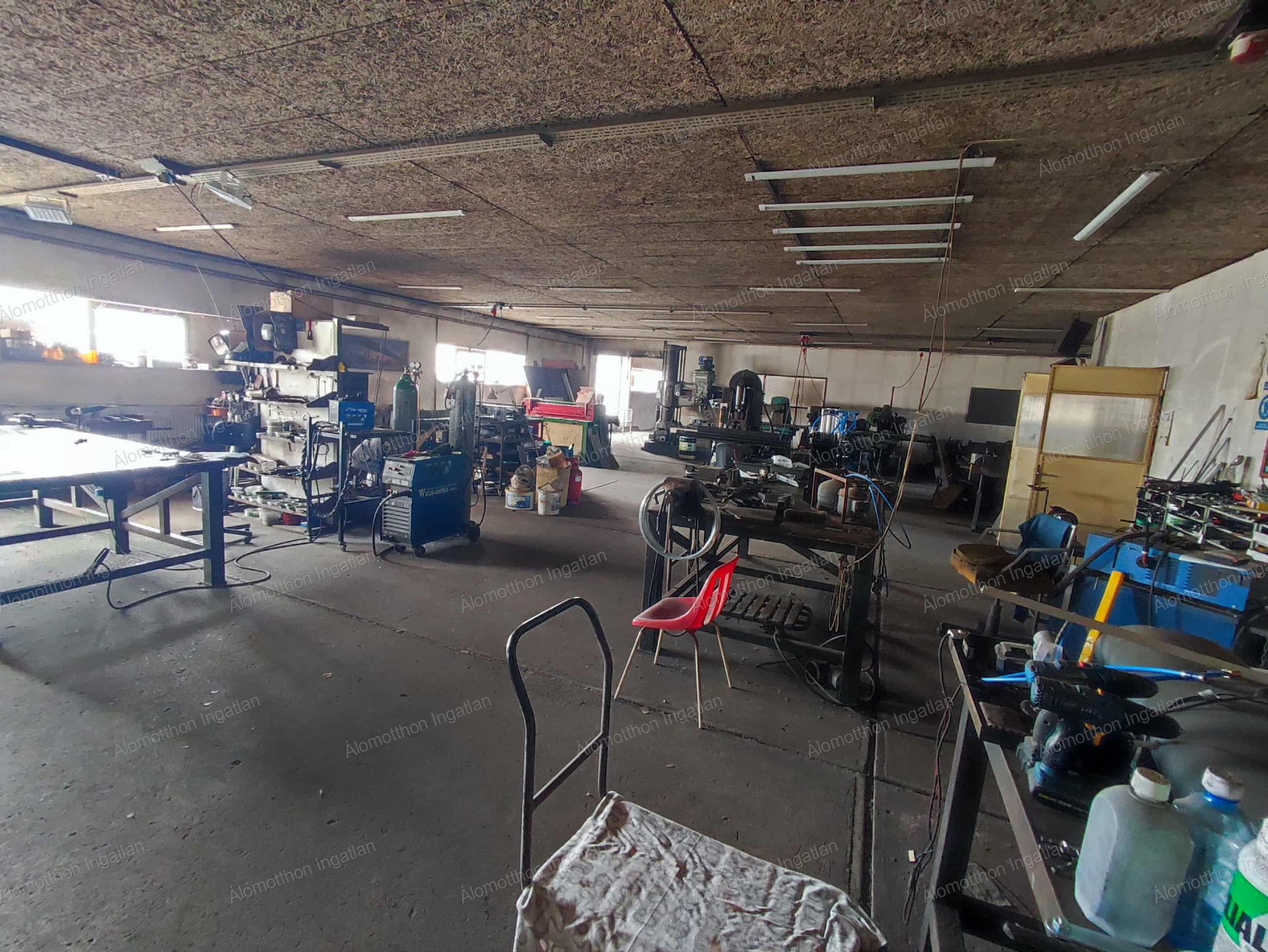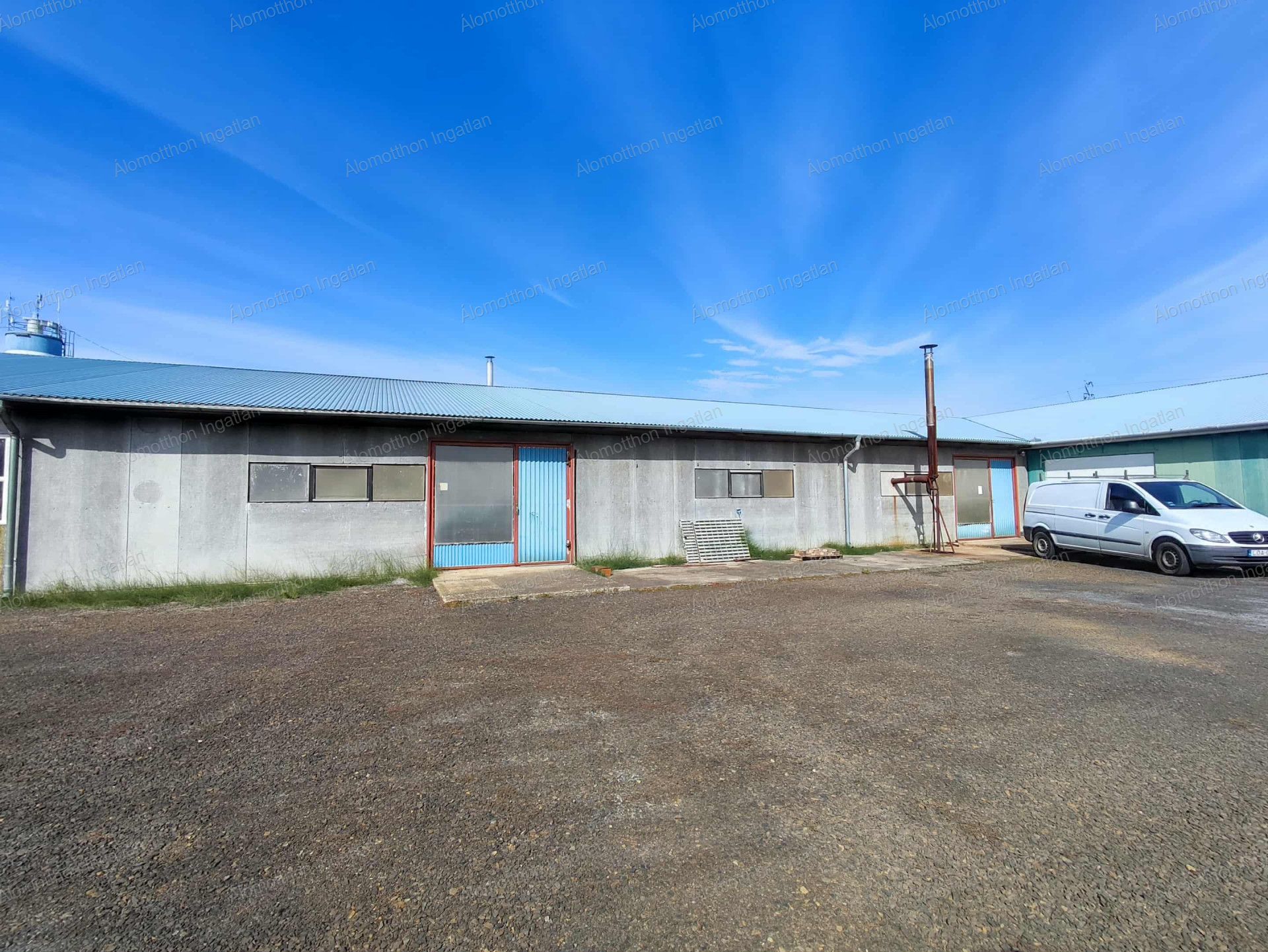 A rajta álló 714 m2 csarnok, melyben kialakításra került műhely, iroda, szinterező (413 m2), raktár (201 m2), valamint egy 100 m2-es lakhatásra alkalmas külön helyiség, benne szoba+nappali + konyha, szoba, fürdőszoba, wc-2db, mosókonyha, kamra és terasz.