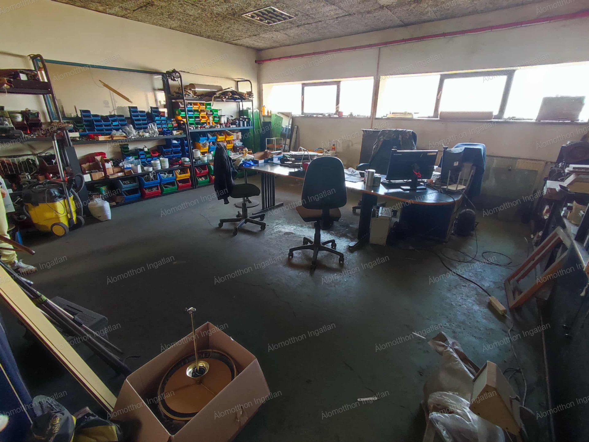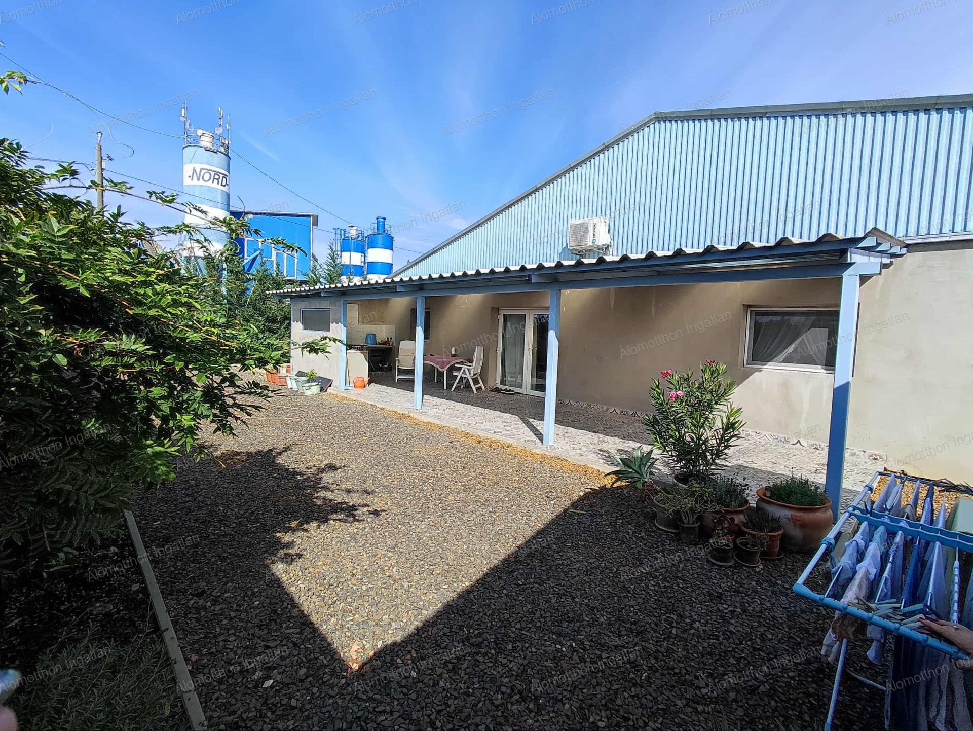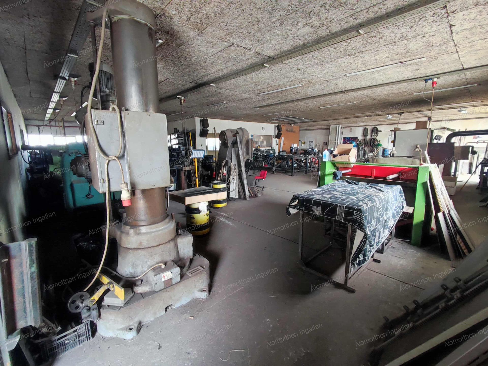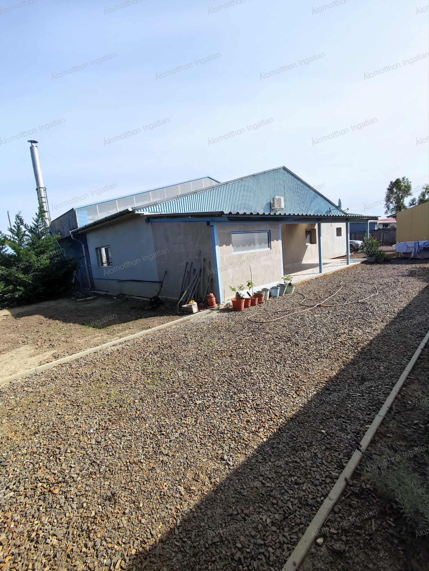 A rajta álló 714 m2 csarnok, melyben kialakításra került műhely, iroda, szinterező (413 m2), raktár (201 m2), valamint egy 100 m2-es lakhatásra alkalmas külön helyiség, benne szoba+nappali + konyha, szoba, fürdőszoba, wc-2db, mosókonyha, kamra és terasz.