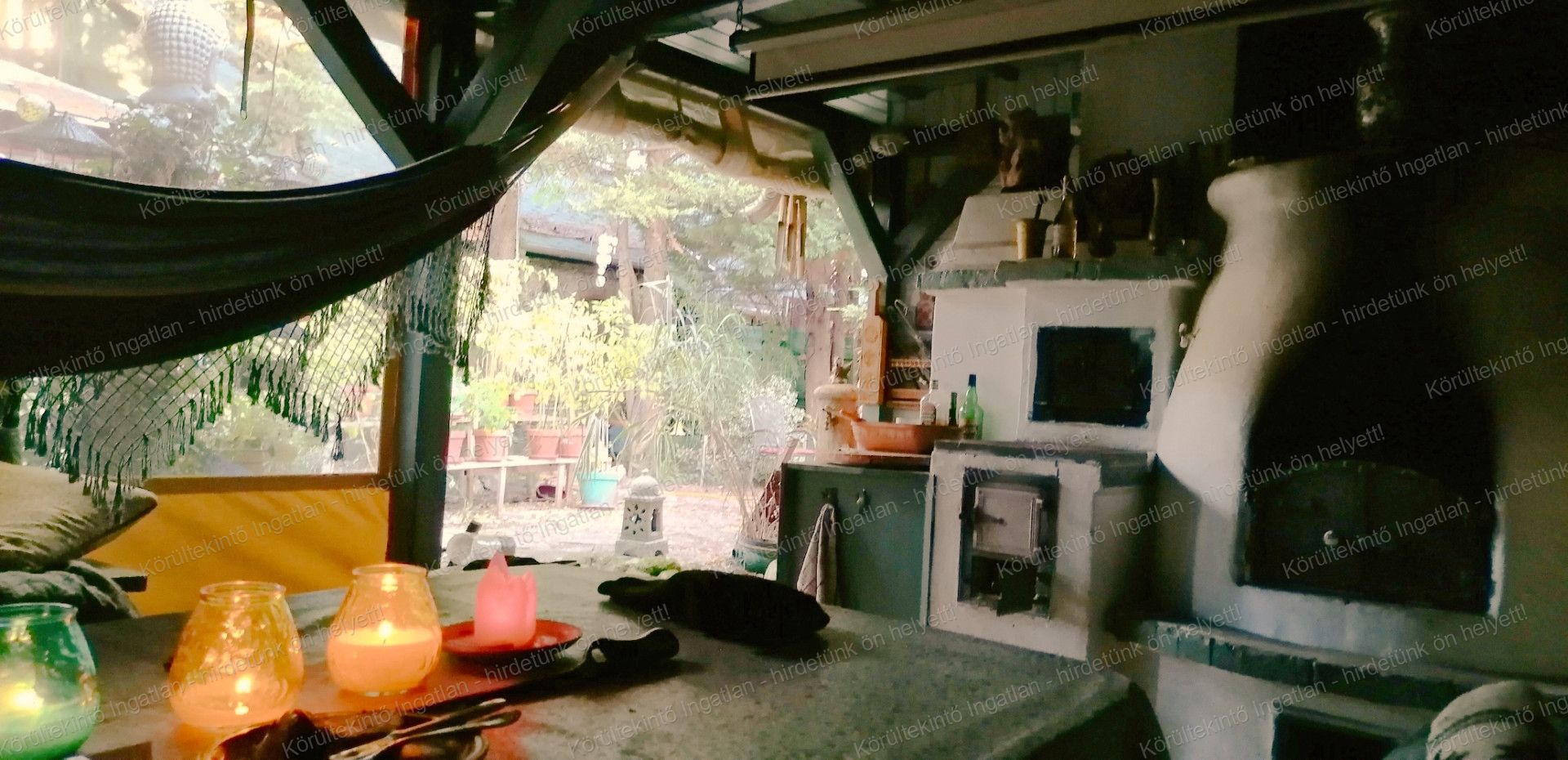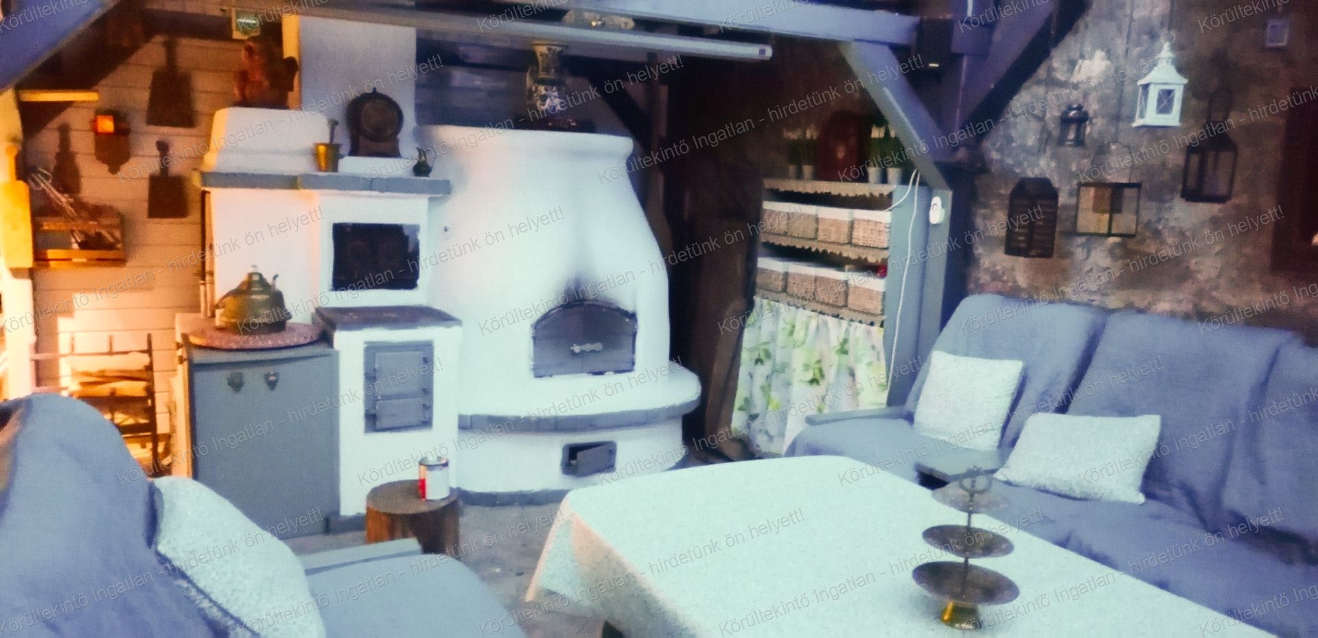 - Zárható, fedett terasz egyedi építésű kemencével, grill- és bogrács hellyel, rendlivel és sparhelttel.  A teraszon házimozi is működtethető.