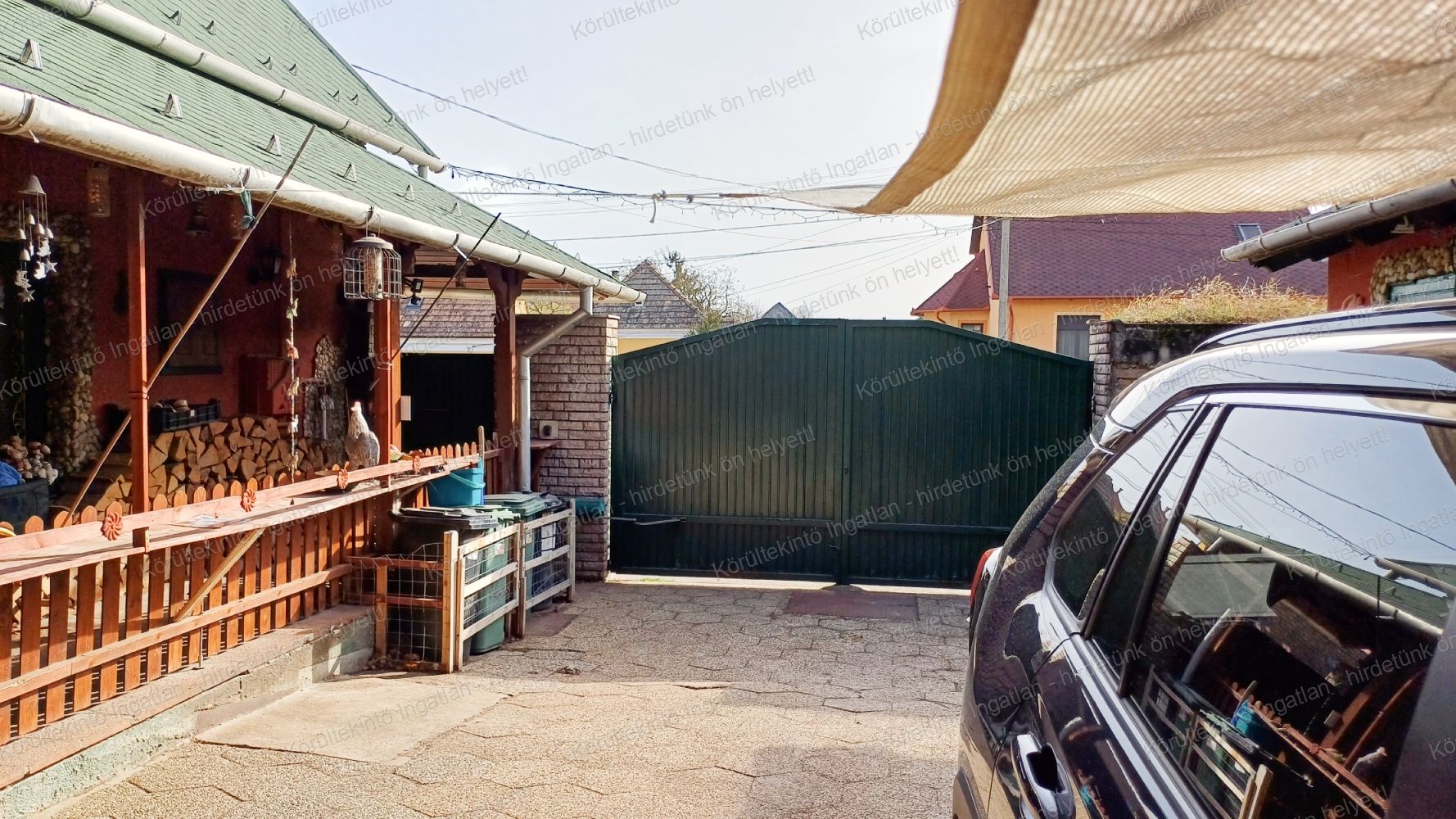 - A kapu elektromosan nyitható, az első udvarra két autó tud beállni.  Az utcán a ház előtt további 6 autónak is elég parkoló áll rendelkezésre.