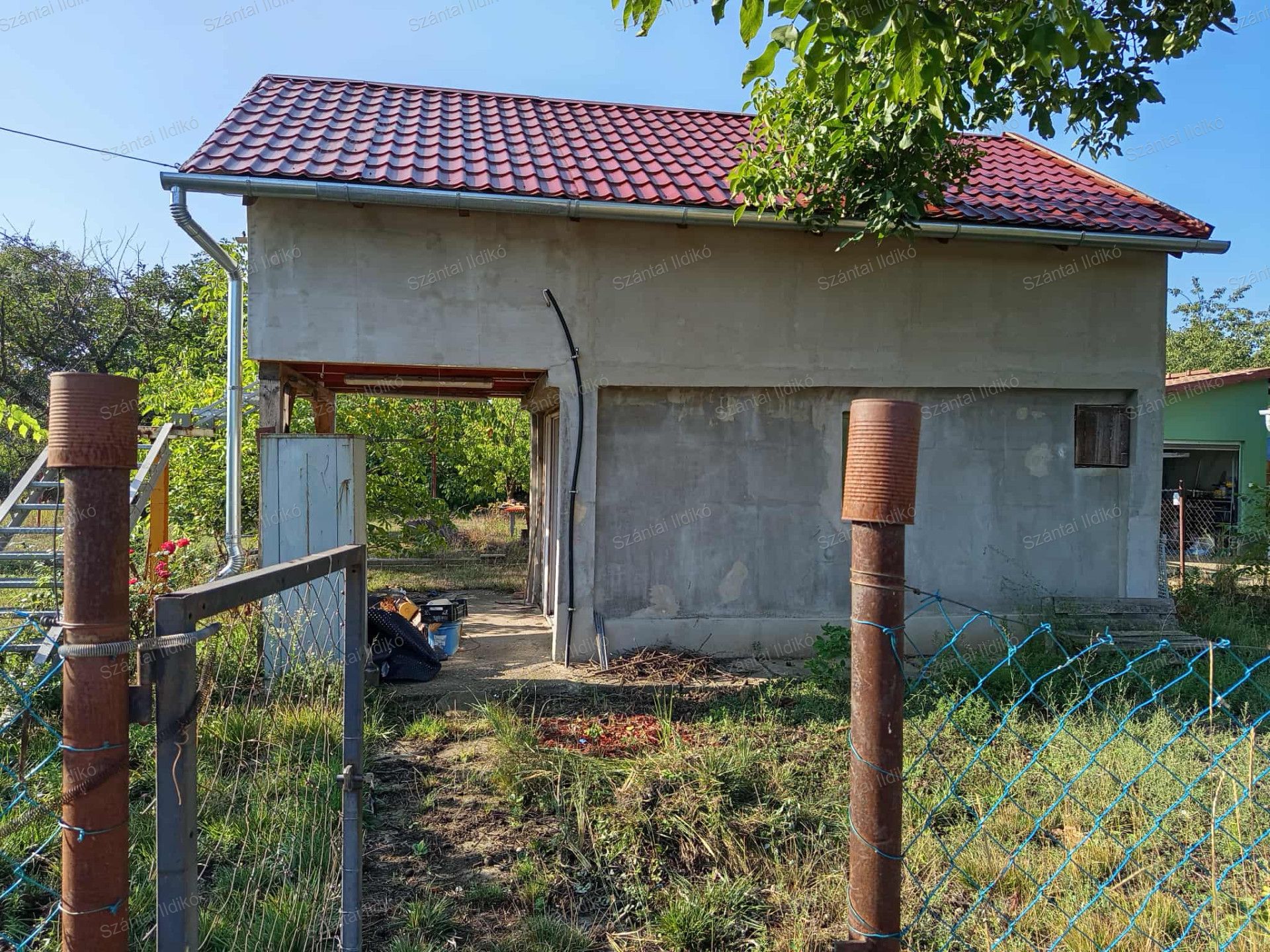 A tetőcsere megtörtént, jó minőségű lemeztetőt kapott.