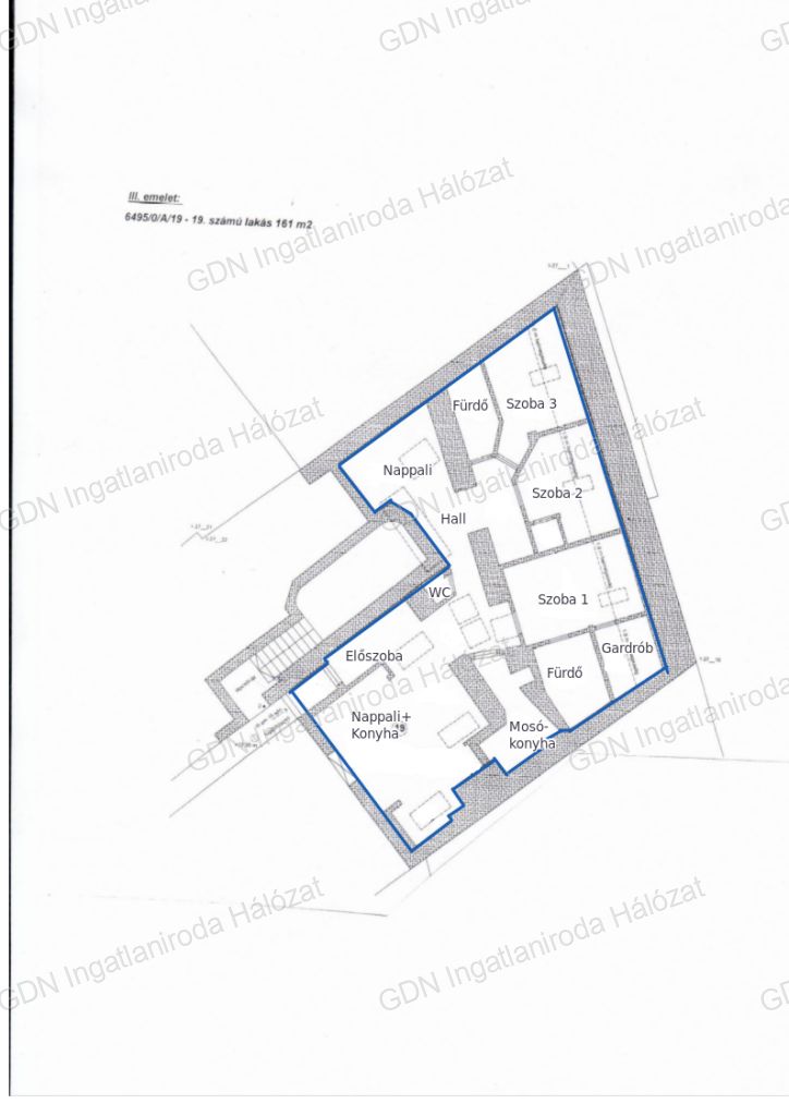 Az ingatlan elrendezése: három külön nyíló szoba, amerikai konyhás nappali, egy belső, galériázatlan lakótér 5,5 méteres belmagassággal, két önálló fürdőszoba, vendégmosdó, valamint mosókonyha/gépészeti helyiség. Az öt szobából három közvetlenül az utcára néz, ahonnan panorámás kilátás nyílik a Dunára, ugyanakkor a lakás teljesen mentes az utcai zajtól.