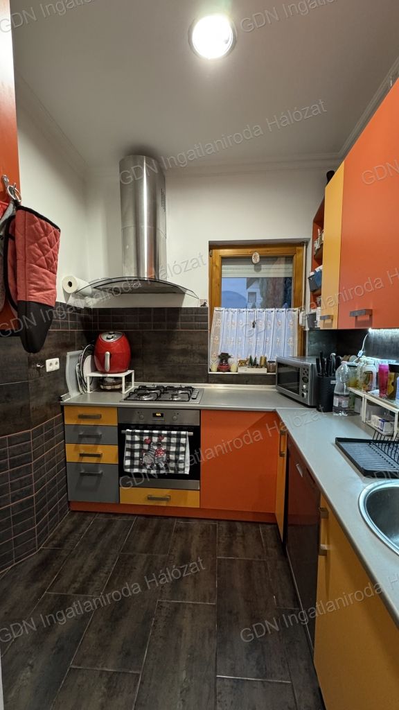- konyha (5 m2) beéített, gépesített konyhabútorral