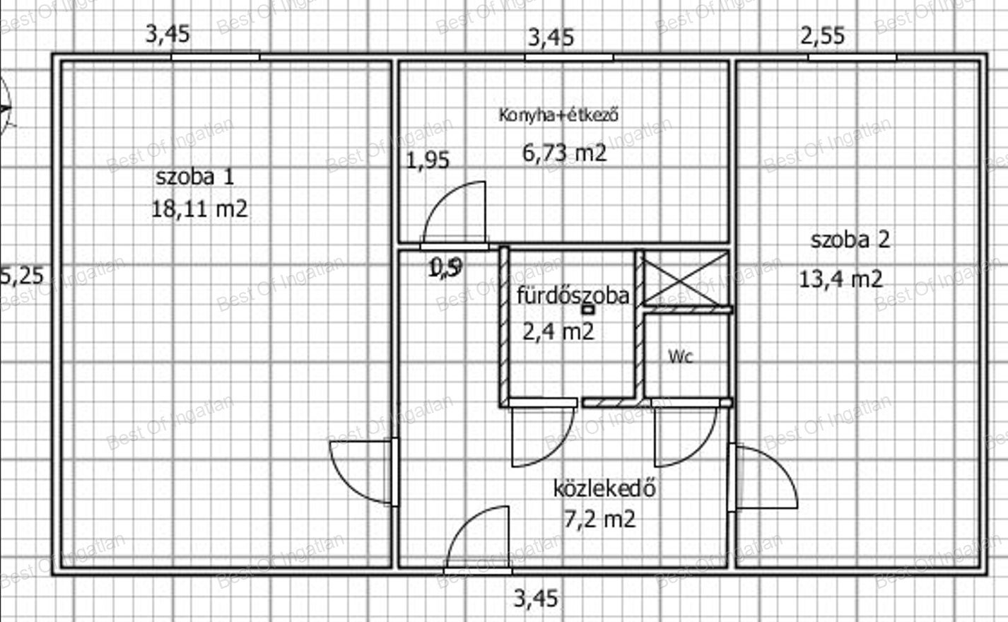 - Lakótér 48 m2-es, elosztása: közlekedő, 2 szoba, konyha-étkező, fürdőszoba, külön wc