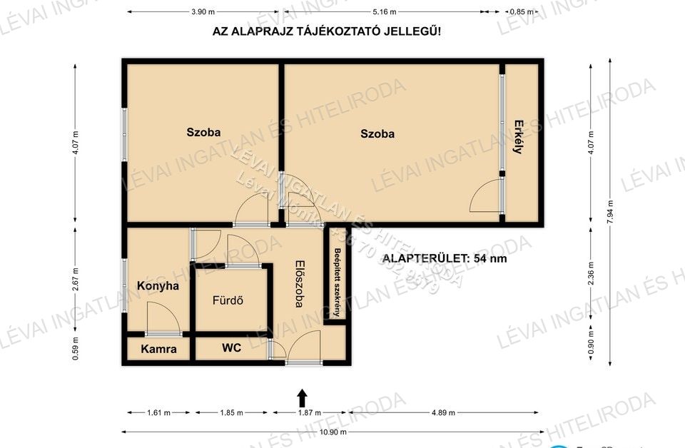 A lakás részei: 2 szoba (egymásból is, de külön-külön is megközelíthető), előszoba, WC, fürdőszoba, konyha, kamra+ erkély. További tulajdonságok: