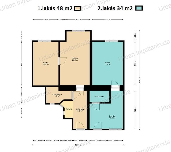 Jelen 34 m2-es lakás ügyvéd által ellenjegyzett használati megosztással kerül leválasztásra, külön bejárattal.
