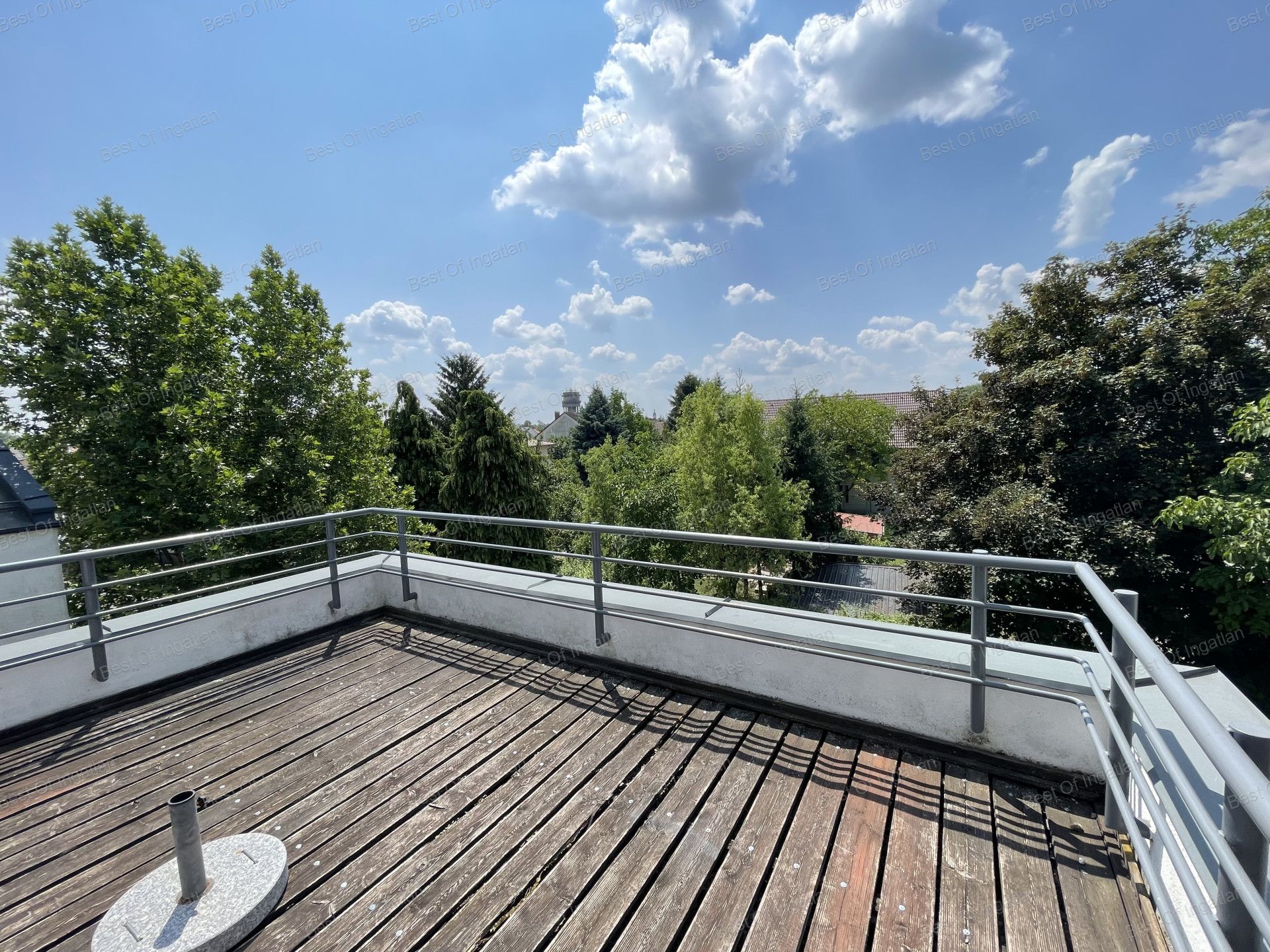 - 137,54 m2-es lakórész + 6,62 m2-es földszinti terasz + 18,78 m2-es tetőterasz + kb. 80 m2 gondozott udvar + 2 zárt udvari gépkocsibeálló