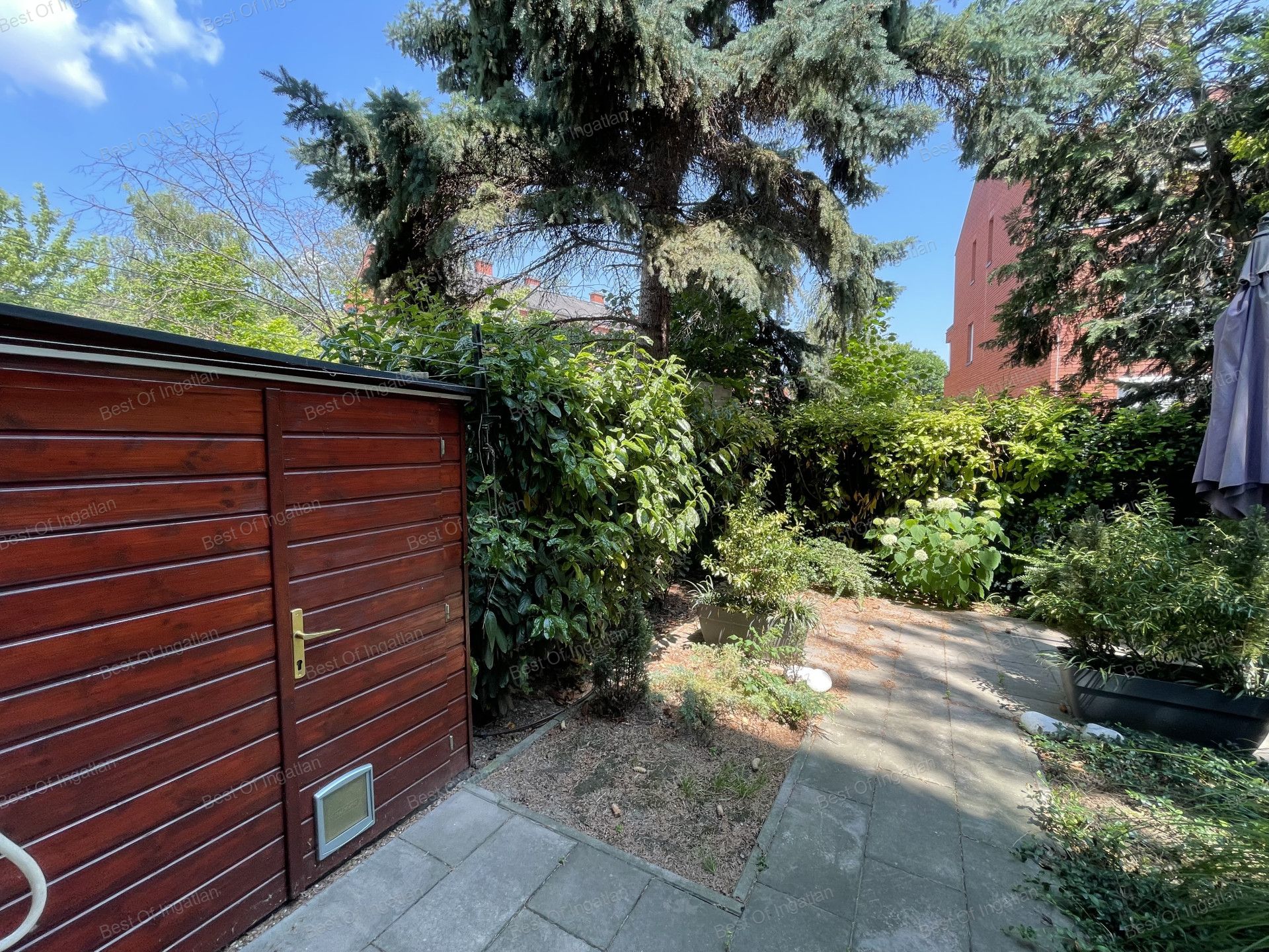 - a parkosított, körbekerített, öntözőrendszerrel kiépített udvaron egy kis kerti tároló is helyet kapott