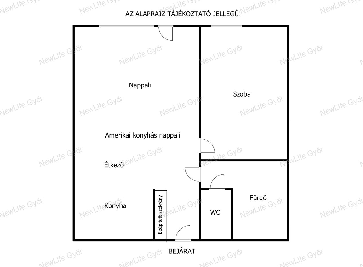 Elrendezés: amerikai konyhás nappali (20,1 m²) + hálószoba (10,4 m²)