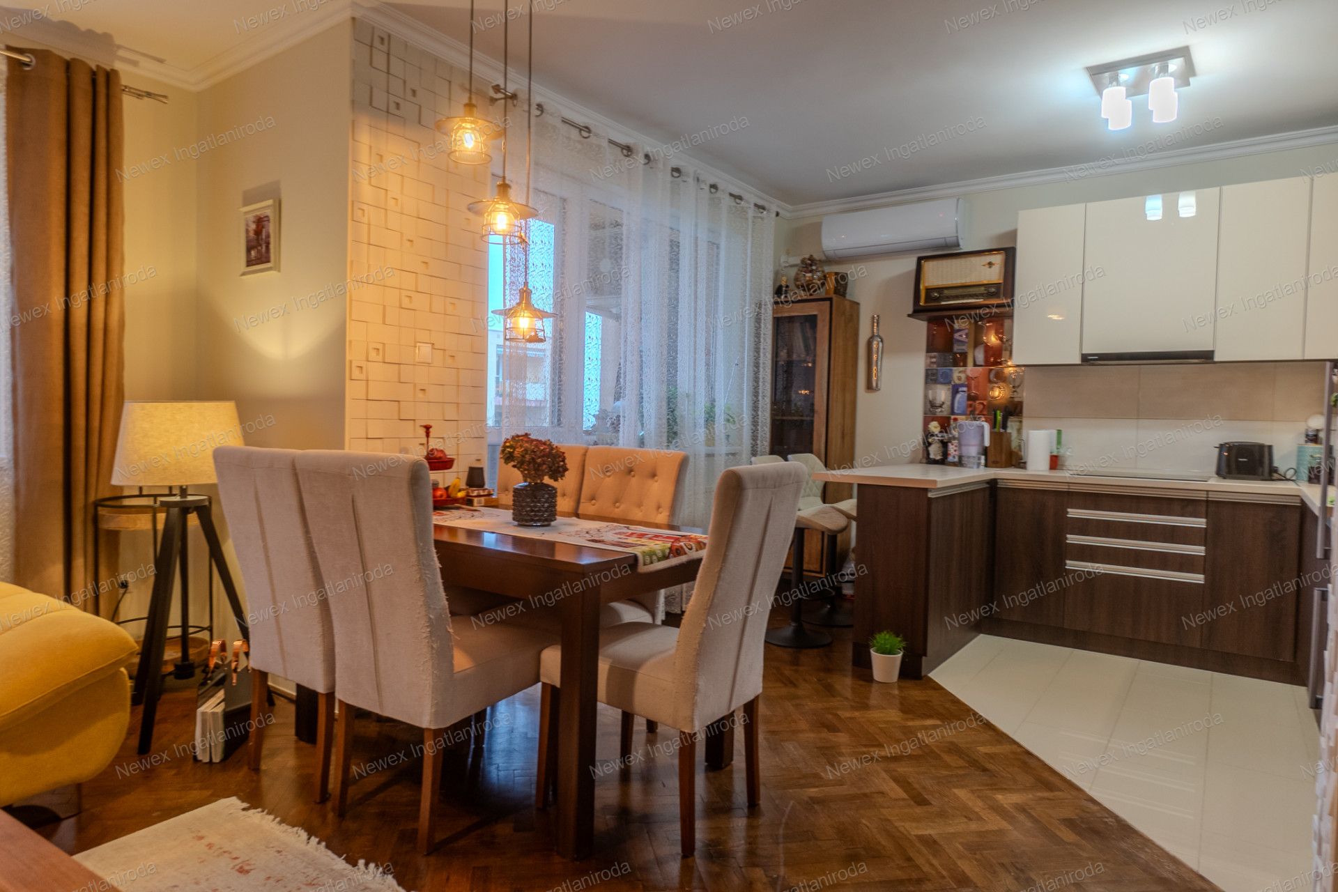 A lakás 2017-ben teljes körű felújításon esett át: komplett fűtés-, víz- és villanyhálózat cserével. A fűtést és a meleg vizet Ariston kombi kazán biztosítja, a nyári hőséget pedig Gree inverteres klíma teszi kellemesebbé.